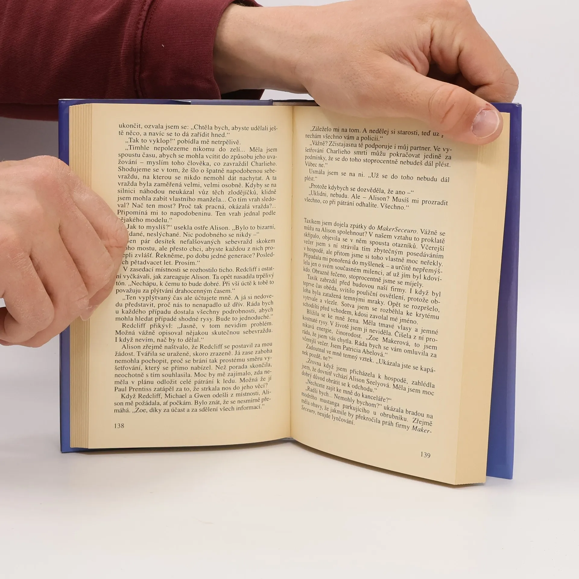 Uprostřed noci probudí Zoe telefon. na druhém konce se ozve téměř nesrozumitelný hlas jejího manžela, než však Charles stačí něco říct, je telefon hluchý. Zoe netuší, kde Charles je, ale okamžitě nasedne do auta a vydá se ho hledat. Když se blíží k Mostu sebevrahů, skočí na silnici před projíždějící auto nějaký muž a způsobí dopravní nehodu. Zoe v sebevrahovi pozná svého manžela-a auto, před něž se vrhl, je naprosto stejné jako její. Zoe ani na okamžik neuvěří, že by Charles spáchal sebevraždu a proto se snaží pátrat sama. Naráží na stále nové otázky a smyčka nebezpečí se kolem ní stahuje. Jde o osobní mstu nebo konkurenční boj (mezi bezpečnostními agenturami). Zoe se nemůže spolehnout na nikoho, ani na dceru Caro, která ji viní z otcovy smrti, ani na kolegy z práce, ani na dávnou přítelkyni Allison.