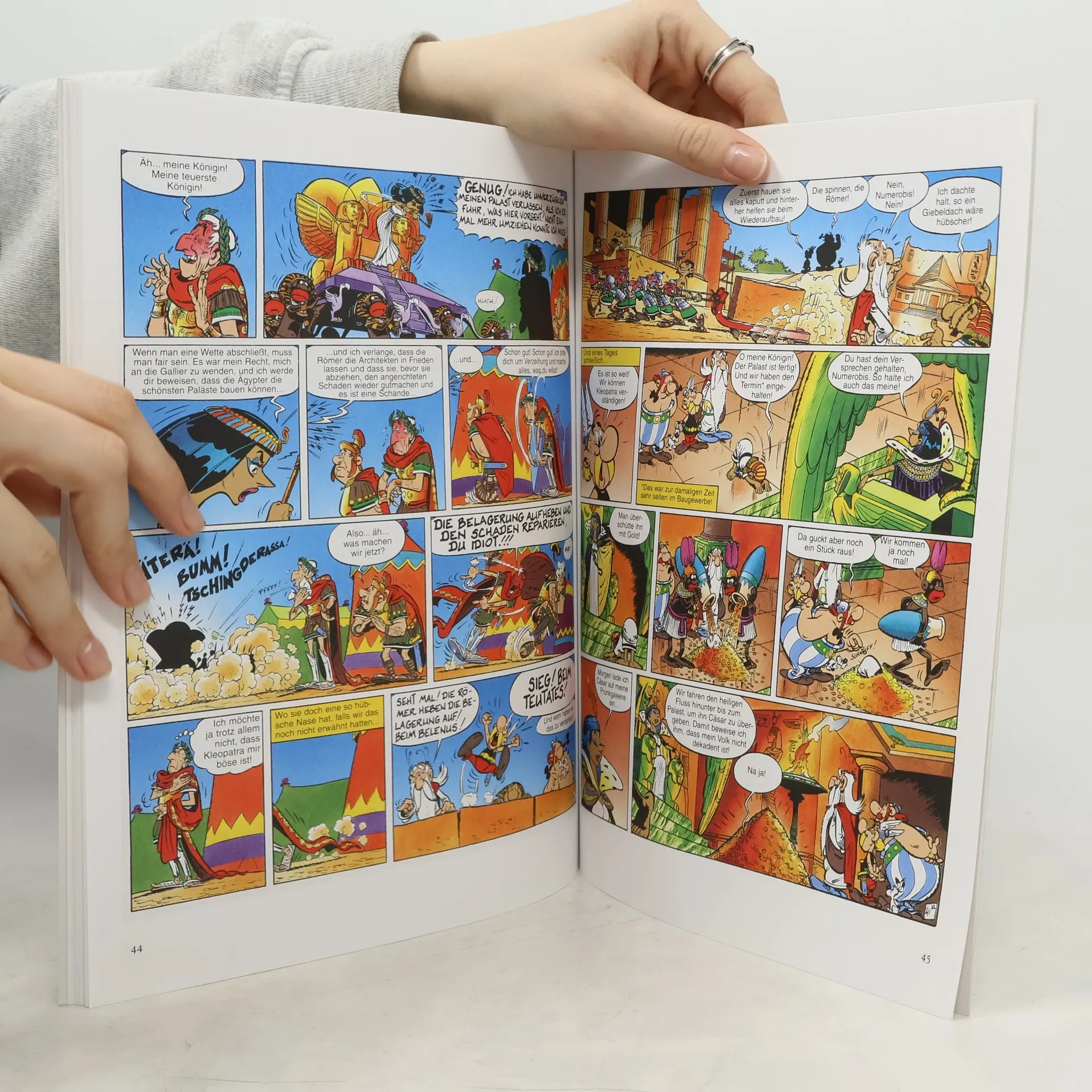 This is an alternate cover edition of ISBN: 377040002X Gemessen an seinem Haus – einer bizarren Eigenkonstruktion – mag man nicht glauben, dass Numerobis als bester Architekt Alexandriens gilt. Allerdings will diese Aussage ja auch nicht viel heißen. Gut, dass er in Miraculix einen Freund hat, der ihm hilft, die ihm gestellte Aufgabe mit der Hilfe von Asterix und Obelix zu lösen. Kleopatra hatte nämlich mit Cäsar gewettet, in nur drei Monaten einen neuen Palast zu errichten – und majestätische Frauen sollte man bekanntlich nicht verärgern!