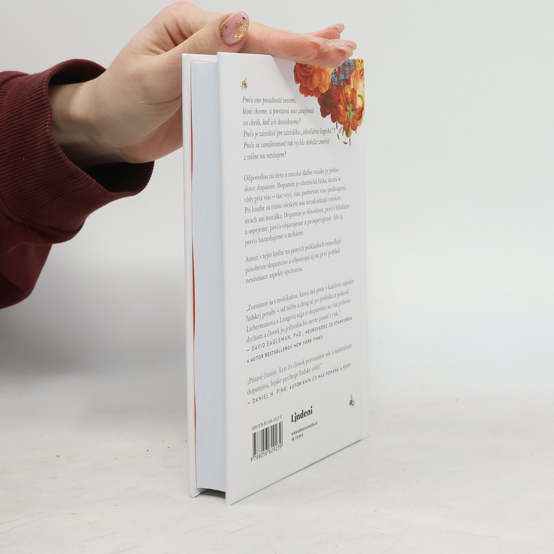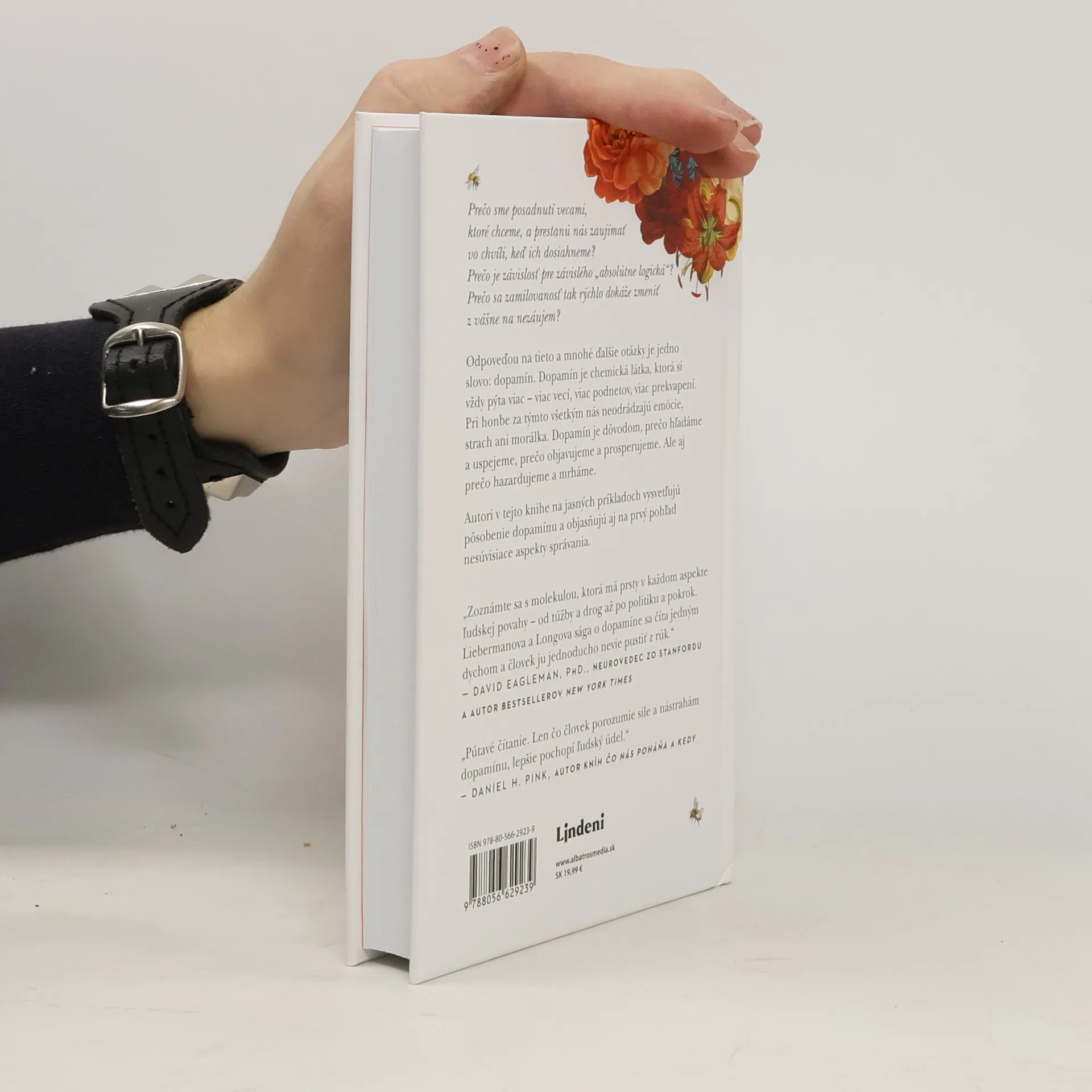 Ako jedna chemická látka v mozgu podnecuje lásku, sex a kreativitu. Prečo sme posadnutí vecami, ktoré chceme a prestanú nás zaujímať vo chvíli, keď ich dosiahneme? Prečo je závislosť „absolútne logická“ pre závislého? Prečo sa zamilovanosť tak rýchlo dokáže zmeniť z vášne na nezáujem? Odpoveďou na tieto a mnohé ďalšie otázky je jedno slovo: dopamín. Dopamín je chemická látka, ktorá si vždy pýta viac – viac vecí, viac podnetov, viac prekvapení. Pri honbe za týmto všetkým nás neodrádzajú emócie, strach ani morálka. Dopamín je dôvodom, prečo hľadáme a uspejeme, prečo objavujeme a prosperujeme. Ale aj prečo hazardujeme a mrháme. Autori v tejto knihe na jasných príkladoch vysvetľujú pôsobenie dopamínu a objasňujú aj na prvý pohľad nesúvisiace aspekty správania.