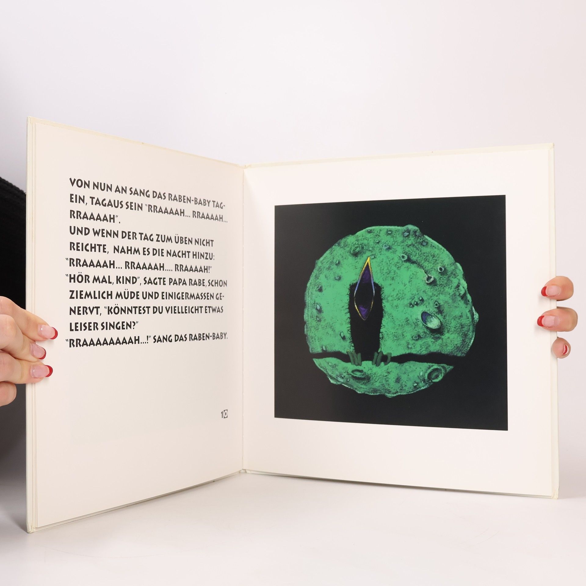 Ein Kirschkern ist die Ursache für sein bescheidenes Gepiepse. Doch als das Rabenbaby wirklich aus vollem Halse krächzt, ist es der Rabengesellschaft zu laut ... (ab 5).