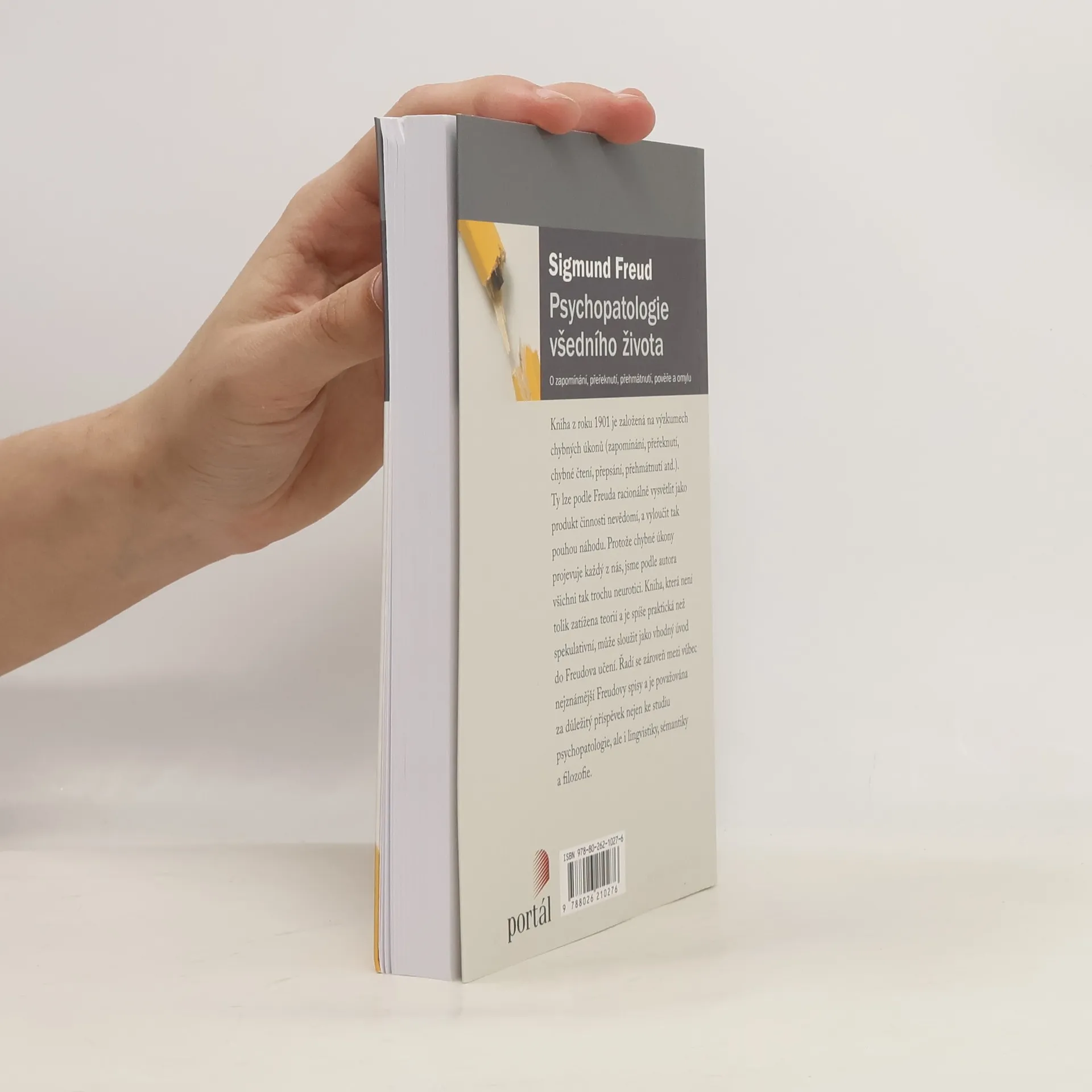 Kniha z roku 1901 je založená na výzkumech chybných úkonů (zapomínání, přeřeknutí, chybné čtení, přepsání, přehmátnutí atd.). Ty lze podle Freuda racionálně vysvětlit jako produkt činnosti nevědomí, a vyloučit tak pouhou náhodu. Protože chybné úkony projevuje každý z nás, jsme podle autora všichni tak trochu neurotici. Kniha, která není tolik zatížena teorií a je spíše praktická než spekulativní, může sloužit jako vhodný úvod do Freudova učení. Řadí se zároveň mezi vůbec nejznámější Freudovy spisy a je považována za důležitý příspěvek nejen studia psychopatologie, ale i lingvistiky, sémantiky a filosofie. Sigmund Freud (1856–1939), vídeňský neurolog a psychoterapeut, zakladatel psychoanalýzy, třetí nejcitovanější osoba v psychologii 20. století.