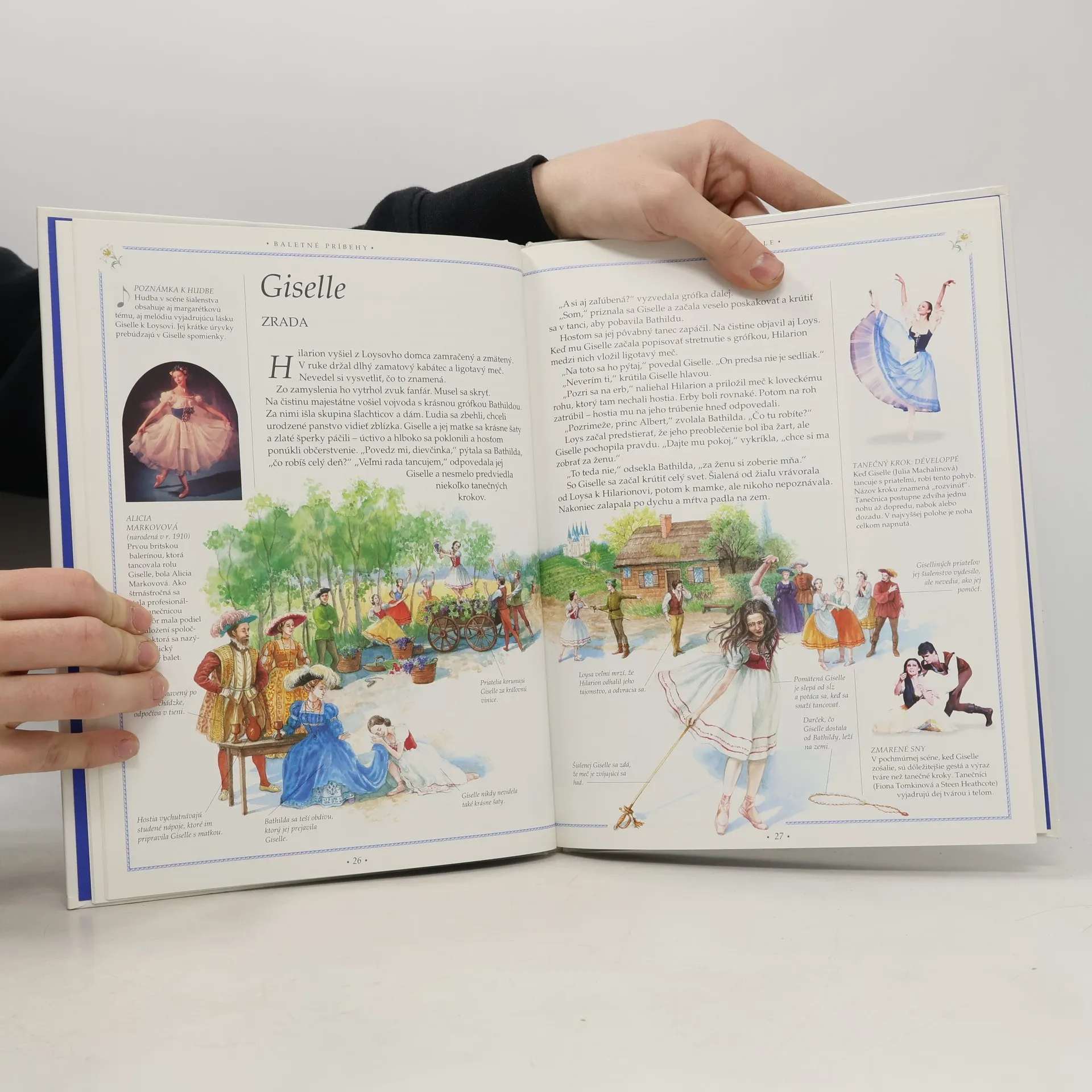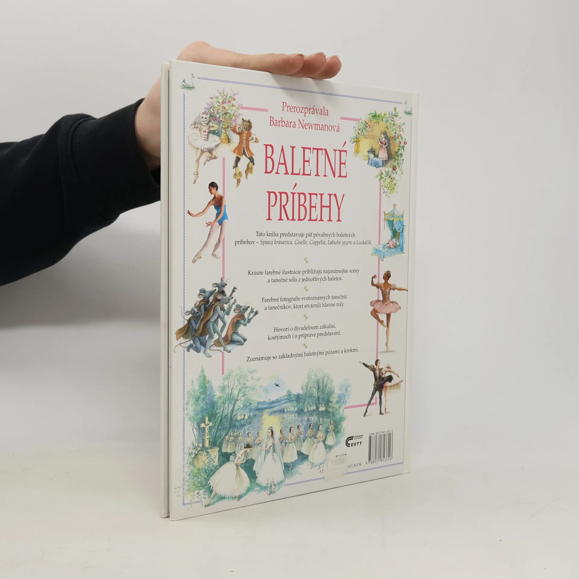Táto kniha predstavuje päť pôvabných baletných príbehov. Farebné fotografie svetoznámych tanečníc a tanečníkov, ktorí stvárnili hlavné roly. Kniha zoznamuje so základnými baletnými pózami a krokmi. Obsah: Základy baletu, Spiaca krásavica-Krstiny, Oslava narodenín, Sen, Prebudenie, Svadba. Giselle-Na dedine, Zrada, Ríša víl, Víťazstvo lásky. Coppélia-Hádka milencov, V dielni, Splnený sen, Oslava. Labutie jazero-Oslava princovej plnoletosti, Pri jazere, Slávnostný ples, Navždy spolu. Luskáčik-Štedrý deň, Myšia vojna, Cukrová krajina, Cukrová víla.