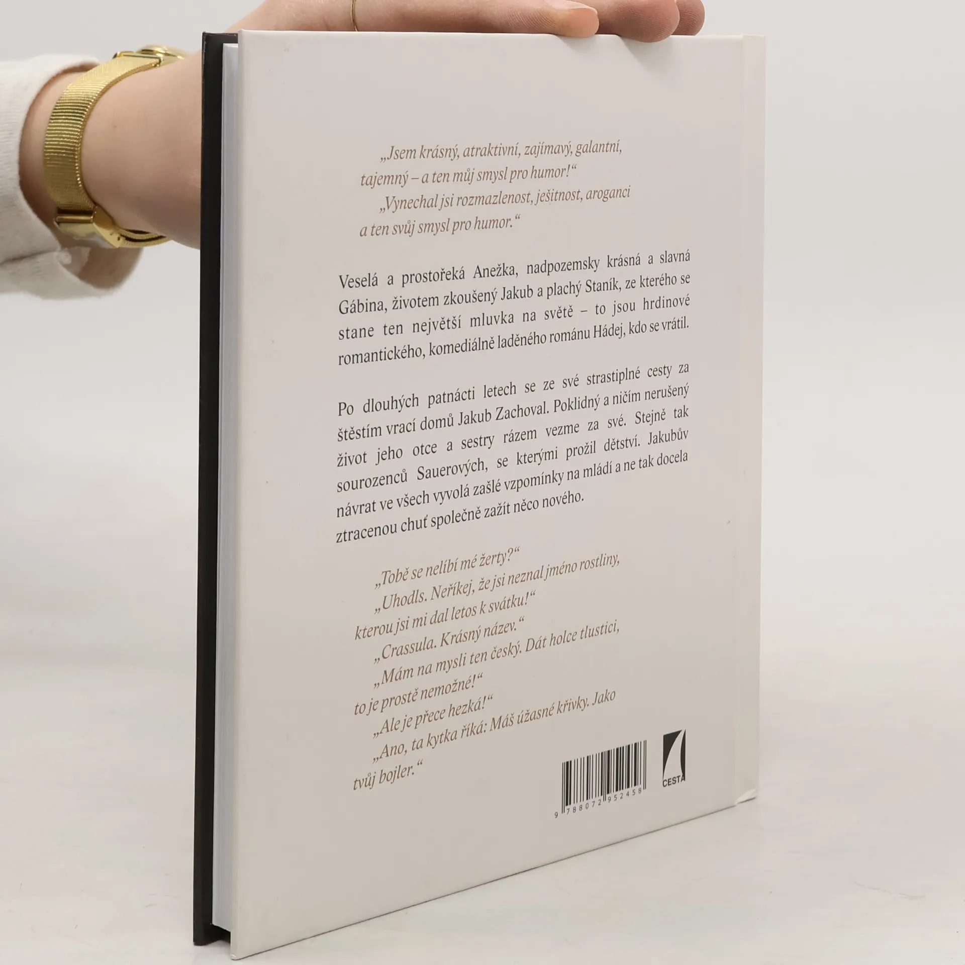 Veselá a prostořeká Anežka, nadpozemsky krásná a slavná Gábina, životem zkoušený Jakub a plachý Staník, ze kterého se stane ten největší mluvka na světě – to jsou hrdinové romantického, komediálně laděného románu Hádej, kdo se vrátil.