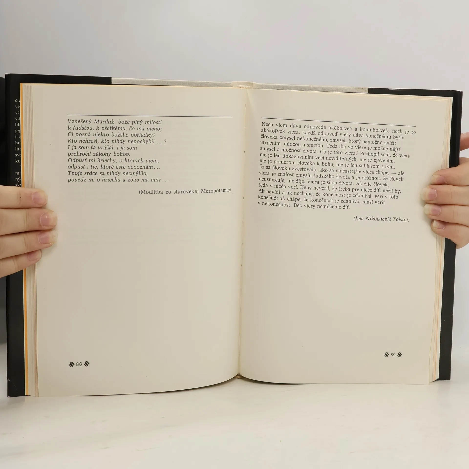Modlitby, meditatívne texty, sentencie a spevy - nech už vznikali kdekoľvek na svete a v ktorejkoľvek dobe -vždy v sebe skrývali okrem vyslovenia vďaky a radosti, žiadosti a prosby tiež hľadanie: hľadanie seba samého, svojej ľudskej podstaty v individuálnych i kolektívnych formách vzťahov k Bohu. Takéto texty mali a majú aj svoj literárny a filozofický význam, majú svoje nezastupiteľné miesto v dejinách kultúry všetkých národov. V tejto knihe sa stretneme s ukážkami kanonizovaných i nekanonizovaných modlitieb, výrokmi náboženských mysliteľov rozličných konfesií, citátmi z Biblie, ale aj s textami iného typu. v ktorých človek vzýva Boha ako svojho pána i partnera v rozhovore o podstate sveta, dobre, láske a pravde. Texty, ktoré vznikli v rozličných dobách a rozličných svetadieloch, vnímajú tento vzťah v perspektíve času odmeriavajúceho život a smrť človeka, vždy však so zameraním na budúcnosť. V tom je ich pôvab, krása a inšpirujúca sila.