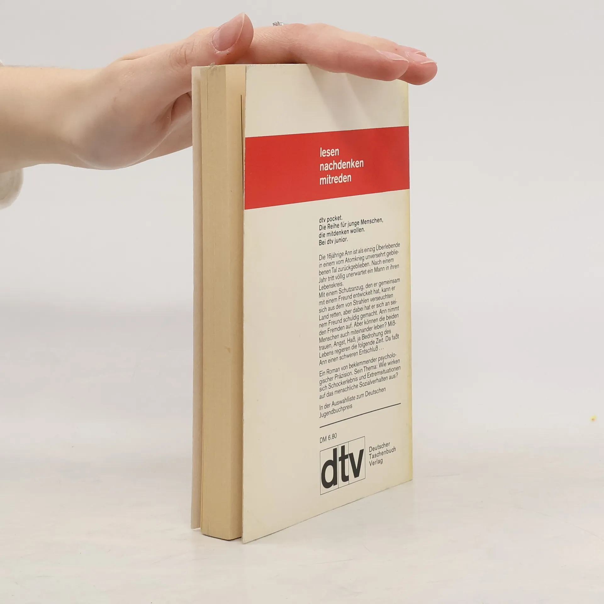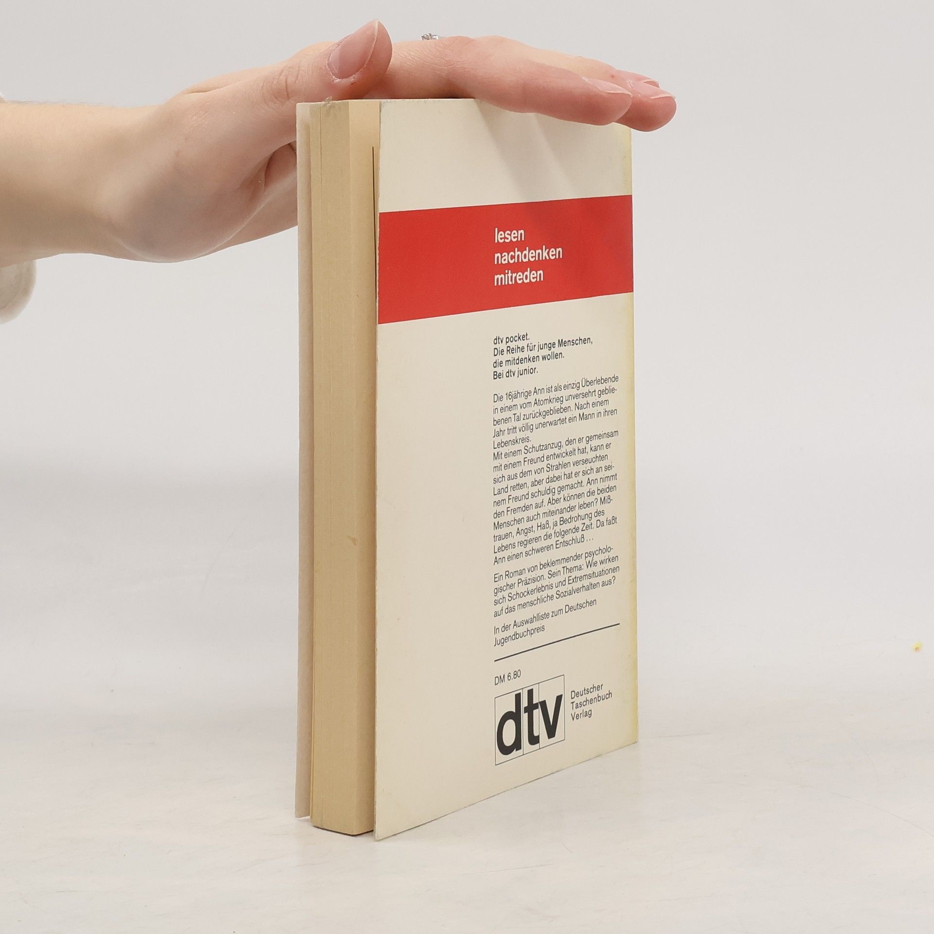 Die 16jährige Ann ist als einzige Überlebende in einem vom Atomkrieg unversehrt gebliebenen Tal zurückgeblieben. Nach einem Jahr tritt völlig unerwartet ein Mann in ihren Lebenskreis. Mit einem Schutzanzug, den er gemeinsam mit einem Freund entwickelt hat, kann er sich aus dem mit Strahlen verseuchten Land retten, aber dabei hat er sich an seinem Freund schuldig gemacht. Ann nimmt den Fremden auf. Aber können die beiden Menschen auch miteinander leben? Mißtrauen, Angst, Haß, ja Bedrohung des Lebens regieren die folgende Zeit. Da faßt Ann einen schweren Entschluß...