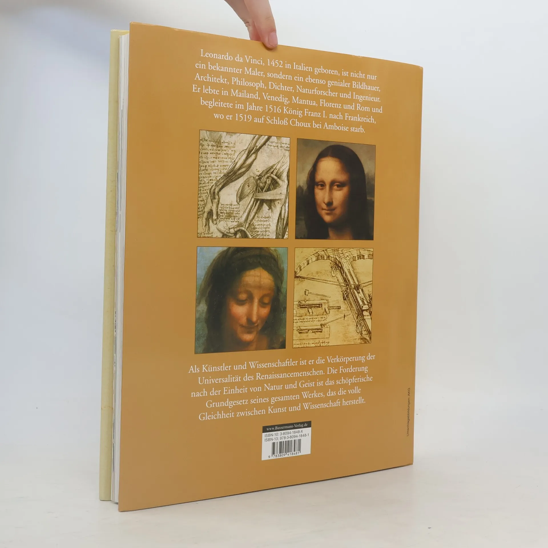 Leonardo da Vinci, 1452 in Italien geboren, war Maler, Bildhauer, Architekt, Philosoph, Dichter, Musiker, Naturforscher und Ingenieur. Dieses Buch öffnet die Tür zur Werkstatt des Universalgenies - mit über 800 erstklassigen Reproduktionen seiner Gemälde, Zeichnungen, Konstruktionsskizzen und Handschriften. Mit seinen Notizen, Skizzen, Entwürfen, Projekten und Bildern wird ein umfassendes Bild seiner Genialität geboten. Berücksichtigt sind auch zwei Notizbücher des Künstlers, die 1965 in Madrid gefunden wurden. Auch das Buch ist ein Meisterwerk.