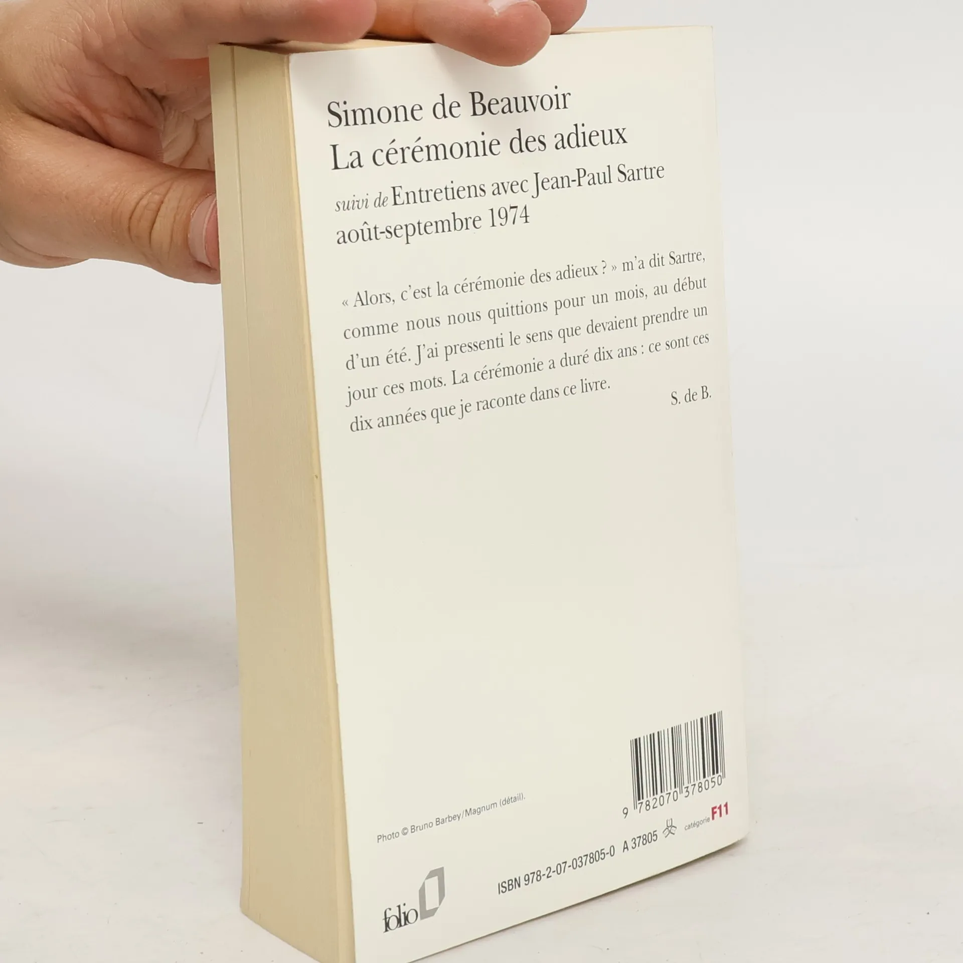 "'Alors, c'est la cérémonie des adieux ?' m'a dit Sartre, comme nous nous quittions pour un mois, au début de l'été. J'ai pressenti le sens que devaient prendre un jour ces mots. La cérémonie a duré dix ans : ce sont ces dix années que je raconte dans ce livre." Simone de Beauvoir.
