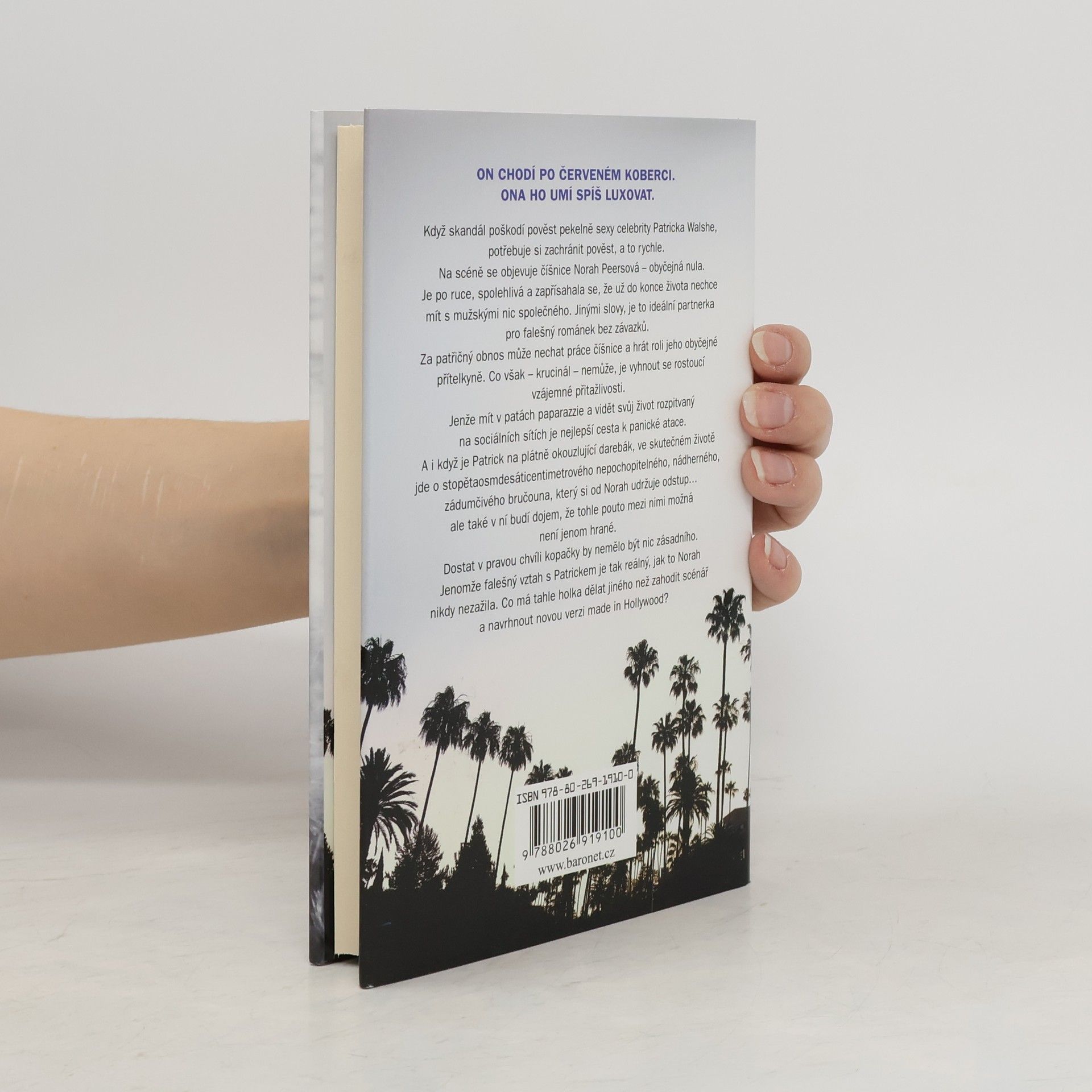 On chodí po červeném koberci. Ona ho umí spíš luxovat. Když skandál poškodí pověst pekelně sexy celebrity Patricka Walshe, potřebuje ji zachránit, a to rychle. Na scéně se objevuje číšnice Norah Peersová – obyčejná nula. Je po ruce, spolehlivá a zapřísahala se, že už do konce života nechce mít s mužskými nic společného. Jinými slovy, je to ideální partnerka pro falešný románek bez závazků. Za patřičný obnos může nechat práce číšnice a hrát roli jeho spolehlivé přízemní přítelkyně. Co však – krucinál – nemůže, je vyhnout se rostoucí vzájemné přitažlivosti. Jenže mít v patách paparazzi a vidět svůj život rozpitvaný na sociálních sítích je nejlepší cesta k panické atace. A i když je Patrick na plátně okouzlující darebák, ve skutečném životě jde o stopětaosmdesáticentimetrového nepochopitelného, nádherného, zádumčivého bručouna, který si od ní udržuje odstup… ale také v ní budí dojem, že tohle pouto mezi nimi možná není jenom hrané. Dostat v pravou chvíli kopačky by nemělo být nic zásadního. Jenomže falešný vztah s Patrickem je tak reálný, jak to Norah nikdy nezažila. Co má holka dělat, než zahodit scénář a navrhnout novou verzi made in Hollywood?