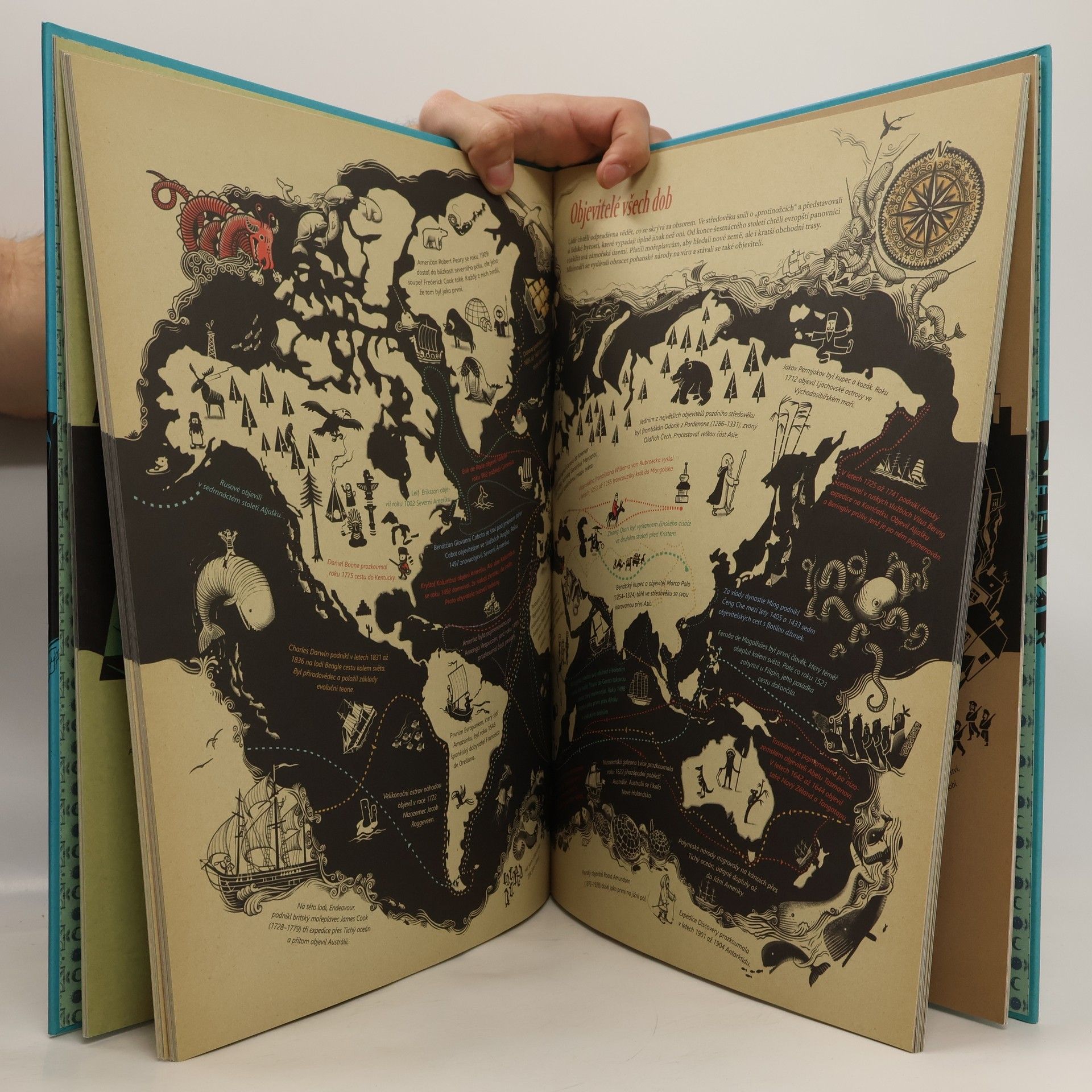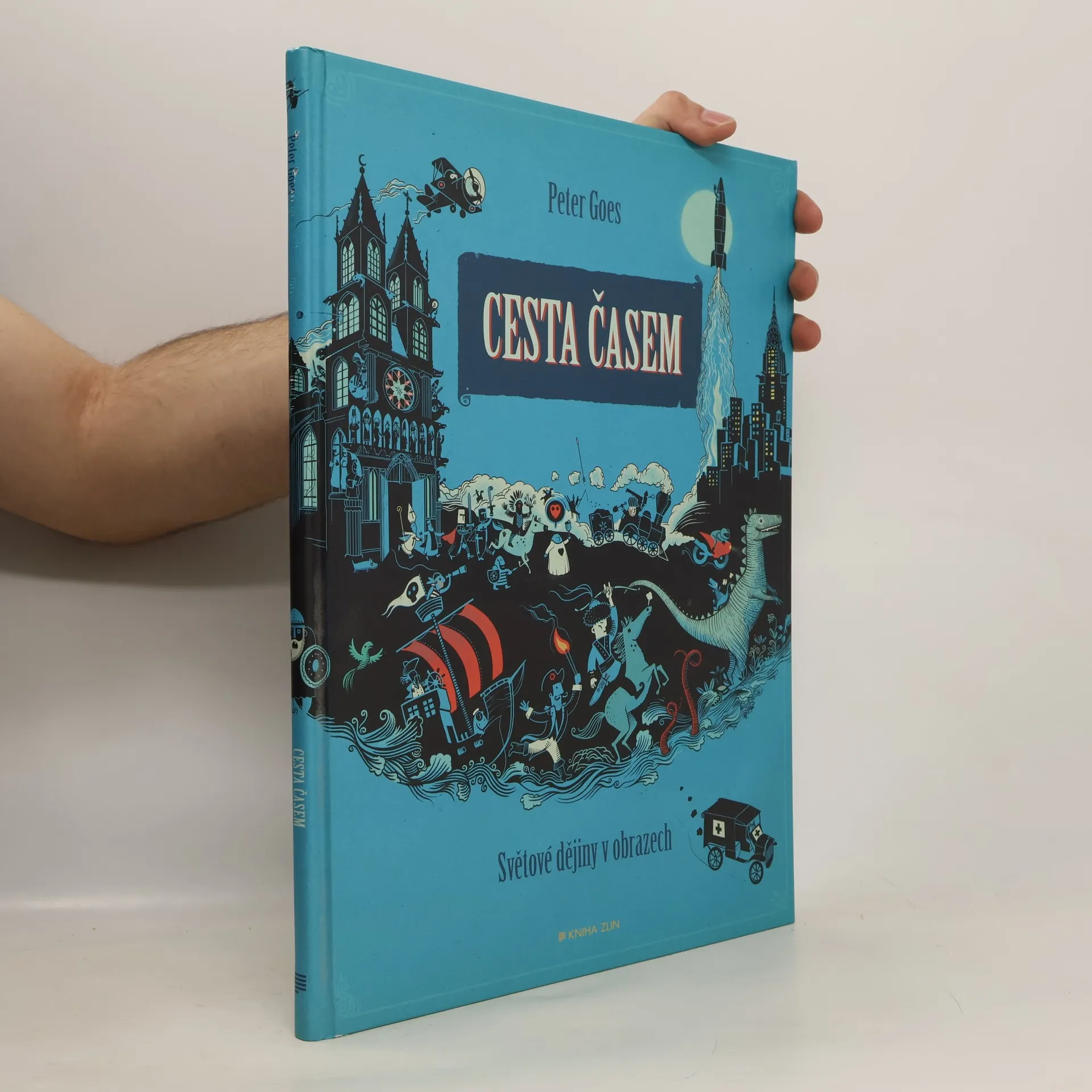Příběh světových dějin pro malé i velké čtenáře, který vás vezme na cestu časem od okamžiku velkého třesku přes období dinosaurů, prvních velkých civilizací, středověku až k turbulentnímu dvacátému století, vesmírným objevům a současnosti. Na osmdesáti stranách zachycuje nejen stěžejní historické okamžiky, války a katastrofy, ale představuje také umělce, důležité myslitele i vládce. Cesta časem není jen sumou historických faktů, ale ukazuje především život a kulturu v jednotlivých obdobích. Nevyhýbá se ani drakům, bájným hrdinům a televizním postavám, ani převratným objevům a vynálezům. Každá ze scén zasazuje historické okamžiky do globální perspektivy, prostoru a času. Pro starší děti a dospělé čtenáře může být kniha kromě zábavy také podnětem k dalšímu studiu nebo otestování vlastních znalostí. Mladší děti ocení především ucelený přehled, který jim lépe umožní pochopit příběh světových dějin.