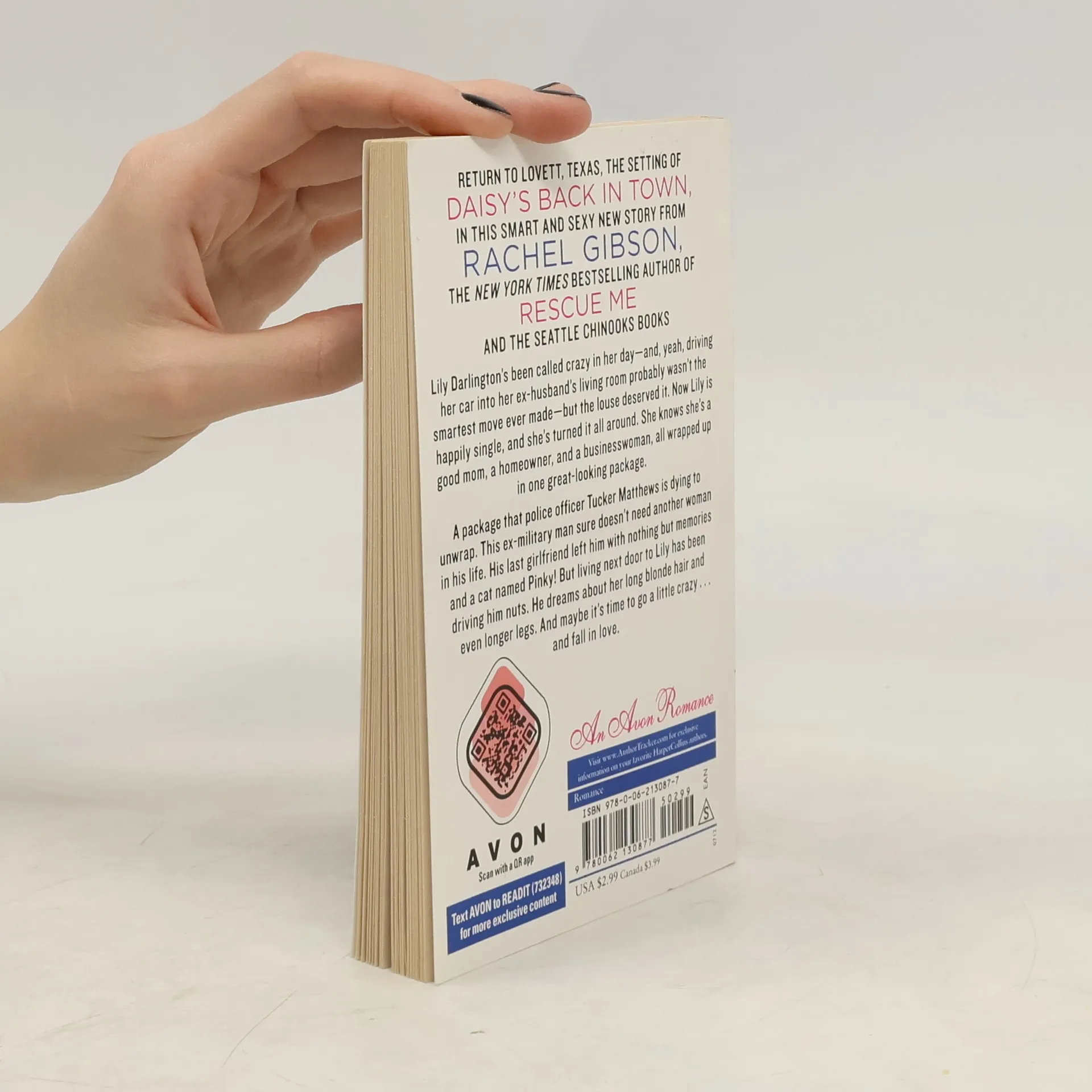 Return to Lovett, Texas, the setting of Daisy's Back in Town, in this smart and sexy new story from Rachel Gibson, the New York Times bestselling author of Rescue Me and the Seattle Chinooks books.Lily Darlington's been called crazy in her day-and, yeah, driving her car into her ex-husband's living room probably wasn't the smartest move ever made-but the louse deserved it. Now Lily is happily single, and she's turned it all around. She knows she's a good mom, a homeowner, and a businesswoman, all wrapped up in one good-looking package.A package that police officer Tucker Matthews is dying to unwrap. This ex-military man sure doesn't need another woman in his life. His last girlfriend left him with nothing but memories and a cat named Pinky! But living next door to Lily has been driving him nuts. He dreams about her long blonde hair and even longer legs. And maybe it's time to go a little crazy . . . and fall in love.