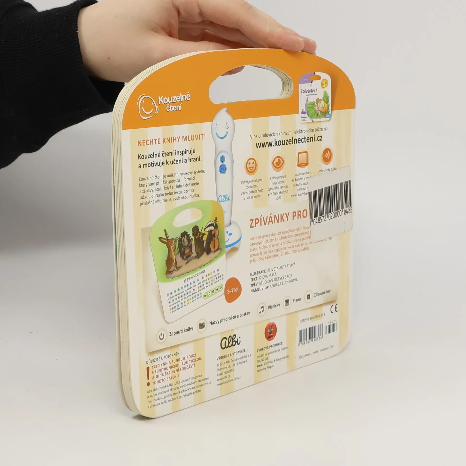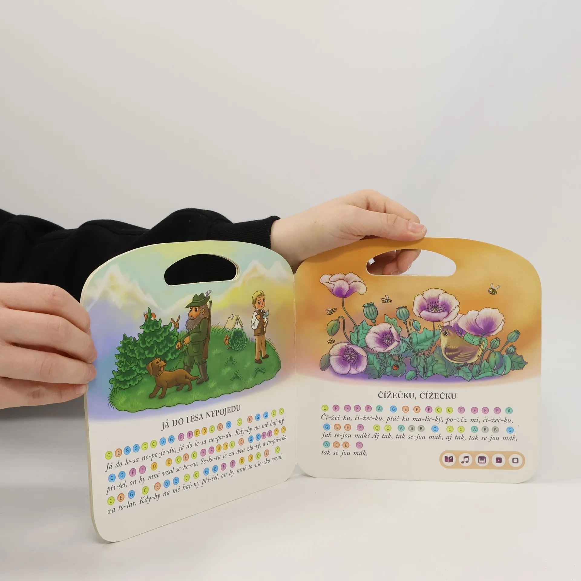 Kniha Zpívánky 2 obsahuje 12 mezi dětmi oblíbených lidových písniček včetně barevných not, které si děti mohou samy přehrát pomocí Kouzelného piana. Mohou si zahrát a zazpívat známé písničky jako Zajíček v své jamce, Já do lesa nepojedu, Pásla ovečky, Já jsem muzikant, Prší prší, Utíkej Káčo, utíkej, Čížečku, čížečku, Když jsem já sloužil, Kalamajka, Když jsem husy pásala, Šla Nanynka do zelí a Běží liška k táboru. Písně v knize Zpívánky 2 si můžete přehrát ve 2 verzích - zpívané a instrumentální podobě. Pomocí ikony knihy a ikony jednoduchého kvízu se děti učí porozumět zpívanému textu. Kniha obsahuje přes 500 zvuků a textů. Je namluvena Andreou Elsnerovou. Interaktivní mluvící kniha je určena pro děti od 3 do 7 let.