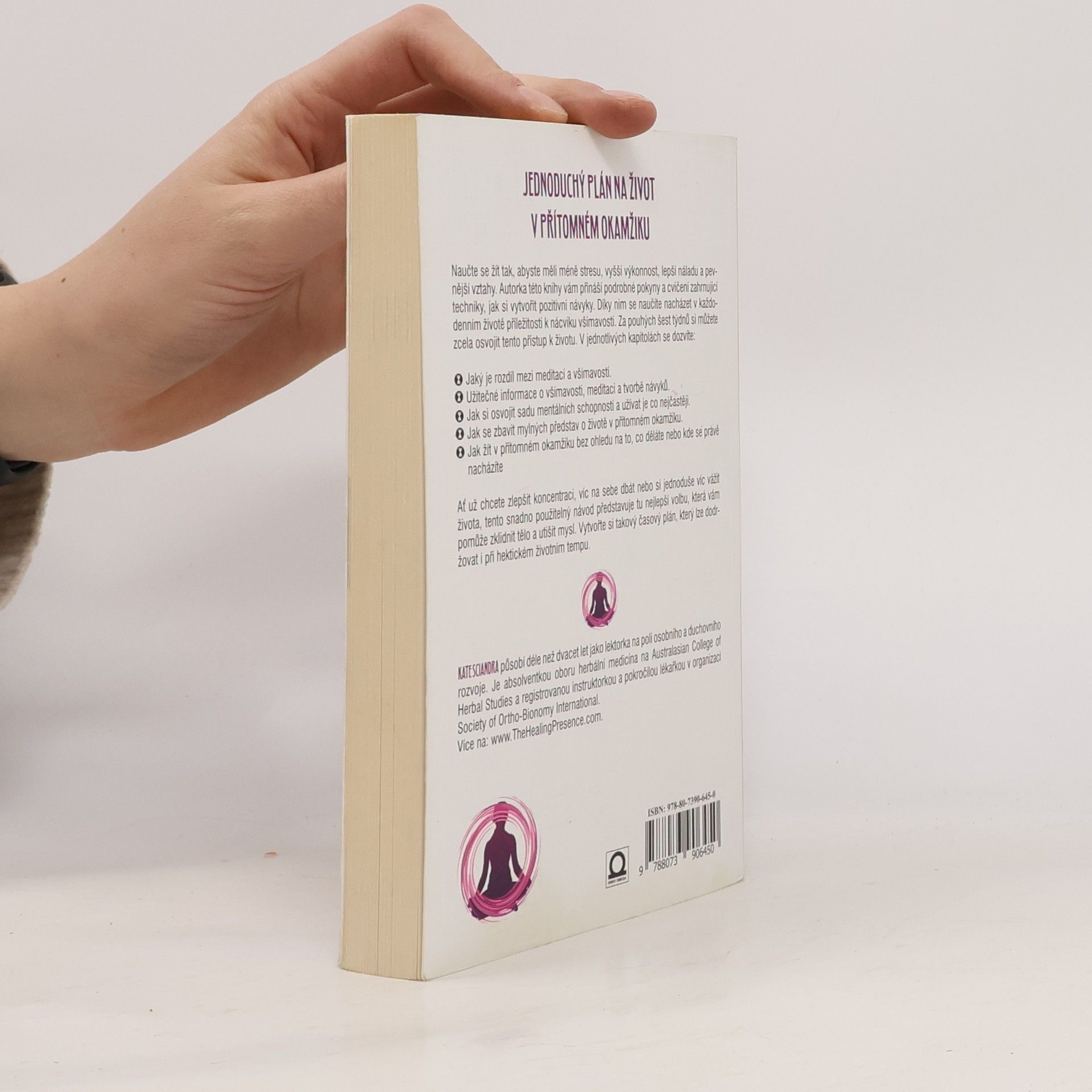Vytvořte si nové životní návyky, omezte stres, zvyšte svou výkonnost, zlepšete si náladu a zkvalitňujte mezilidské vztahy. Techniky a cvičení Kate Sciandry vám pomůže objevit a využít každodenní příležitosti pro trénink všímavosti a zachycení přítomného okamžiku. Tento jednoduchý průvodce vám mimo jiné nabídne: - Jaký je rozdíl mezi meditací a všímavostí, a jak rozpoznat příležitosti k jejich aplikování - Veškeré informace o všímavosti, meditaci a formování návyků - Jak správně využívat vytvořený soubor duševních návyků - Jak se vypořádat s mylnými představami o přítomném okamžiku - Jak žít naplno v daném okamžiku bez ohledu na to, co děláte nebo kde právě jste Ať už chcete zlepšit svou koncentraci, lépe se o sebe starat nebo prostě jen najít větší chuť do života, tato kniha je tou nejlepší volbou pro zklidnění těla a uklidnění mysli¨v pracovním i soukromém životě.