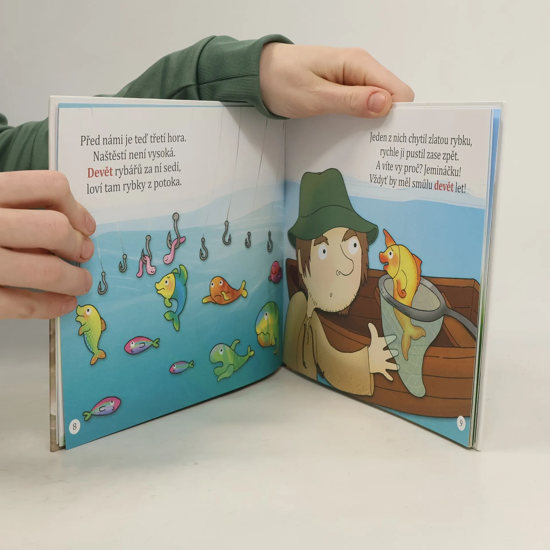 Další z výukových knížek, k předčítání nebo prvnímu samostatnému čtení, věnovaná číslici 9. Pro děti od 3 do 7 let. Vzdělávací pomůcka k obohacení slovní zásoby dětí, též uvádí do základů čtení a podporuje logické myšlení. Součástí je i pracovní sešit.