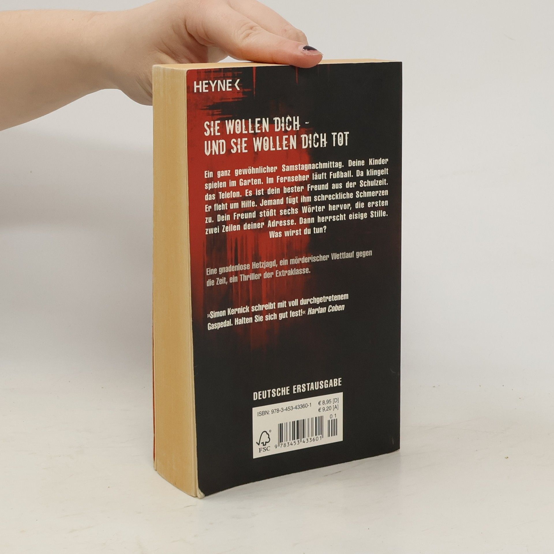 Sie wollen ihn - und sie wollen ihn tot Ein ganz gewöhnlicher Samstagnachmittag. Deine Kinder spielen im Garten. Im Fernseher läuft Fußball. Da klingelt das Telefon. Es ist dein bester Freund aus der Schulzeit. Er fleht um Hilfe. Jemand fügt ihm schreckliche Schmerzen zu. Dein Freund stößt sechs Wörter hervor, die ersten zwei Zeilen deiner Adresse. Dann herrscht Stille. Was wirst du tun?Eine gnadenlose Hetzjagd, ein mörderischer Wettlauf gegen die Zeit, ein atemberaubender Thriller der Extraklasse.