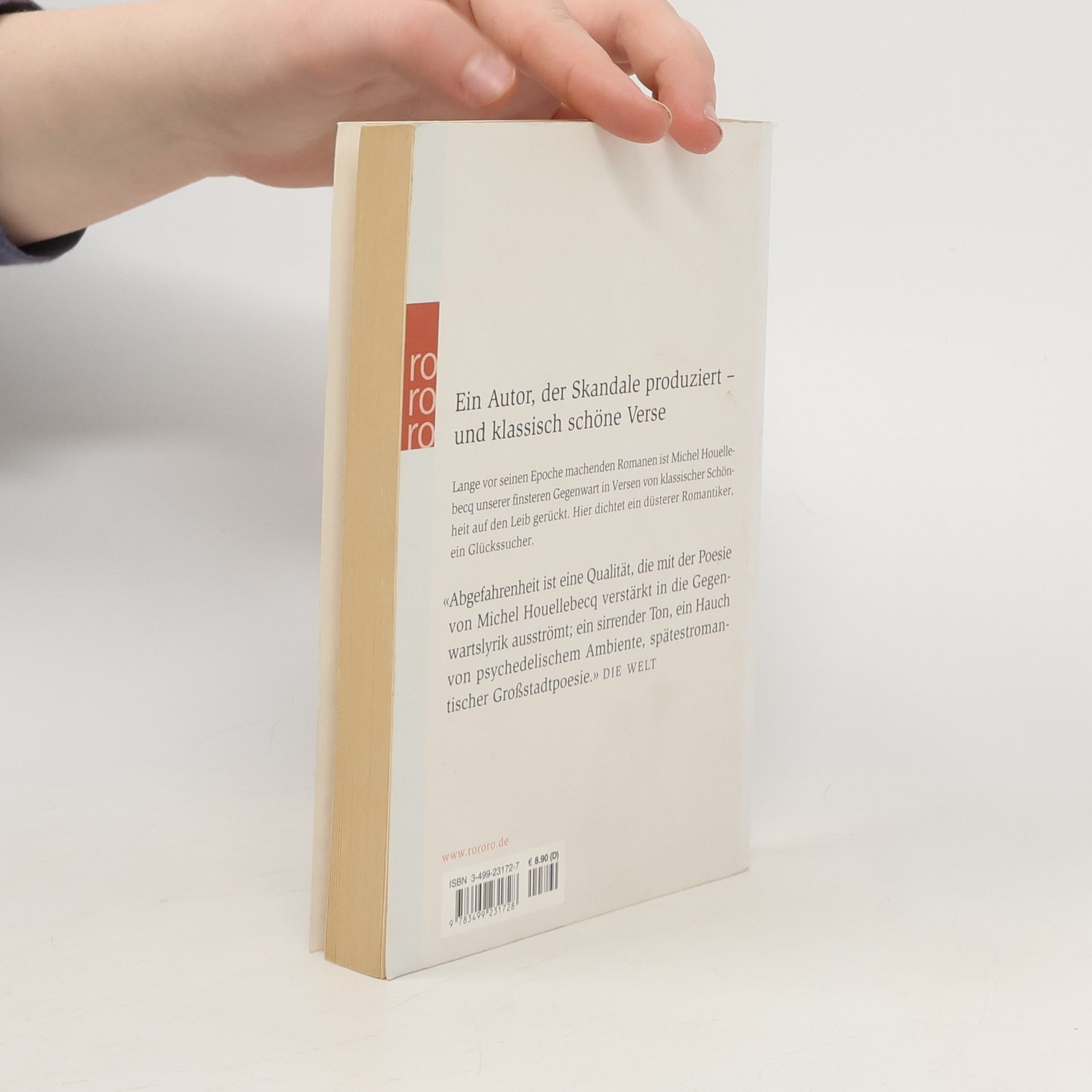 Ein Autor, der Skandale produziert und klassisch schöne Verse. Lange vor seinen Epoche machenden Romanen ist Michel Houellebecq unserer finsteren Gegenwart in Versen von klassischer Schönheit auf den Leib gerückt. Hier dichtet ein düsterer Romantiker, ein Glückssucher. Abgefahrenheit ist eine Qualität, die mit der Poesie von Michel Houellebecq verstärkt in die Gegenwartslyrik ausströmt; ein sirrender Ton, ein Hauch von psychedelischem Ambiente, spätestromantischer Großstadtpoesie. (Die Welt)