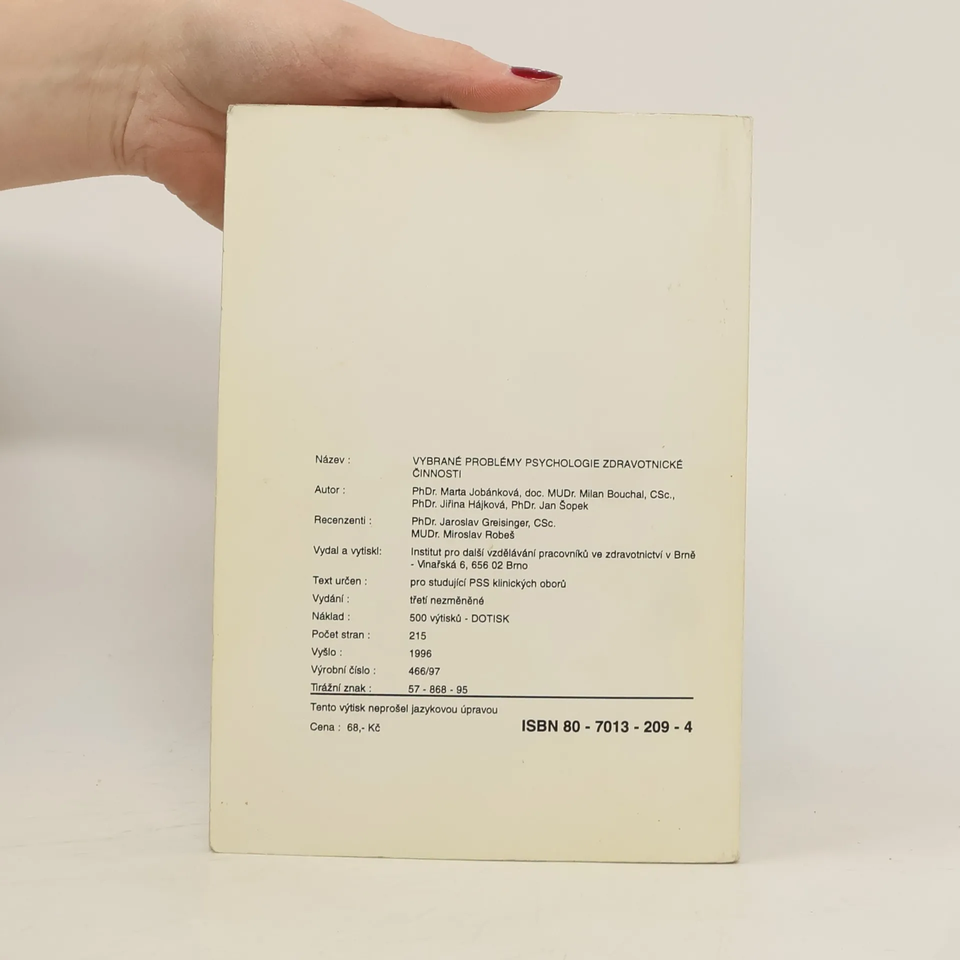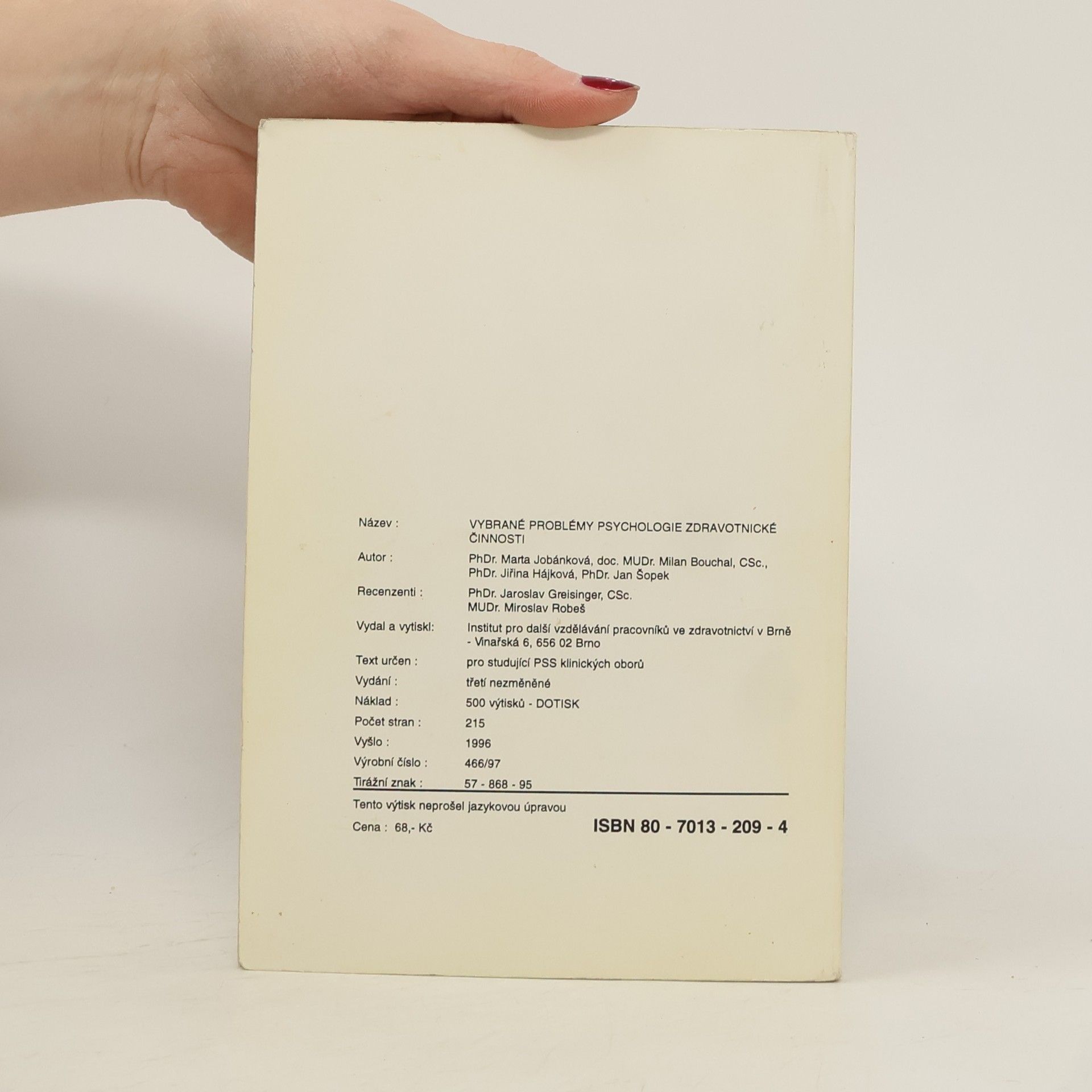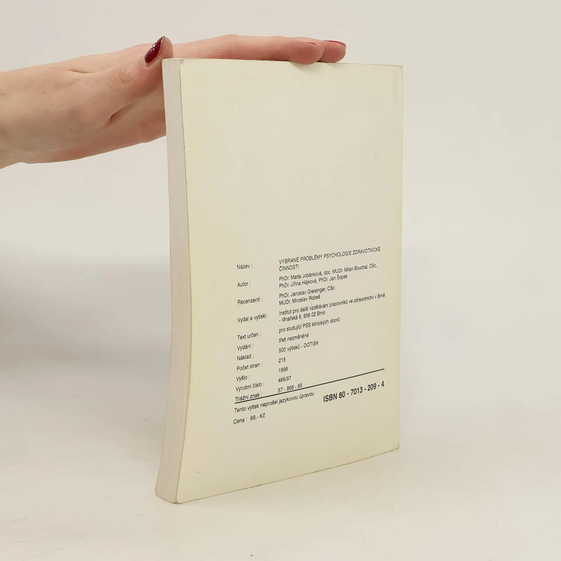 Vybrané problémy psychologie zdravotnické činnosti, Various authors