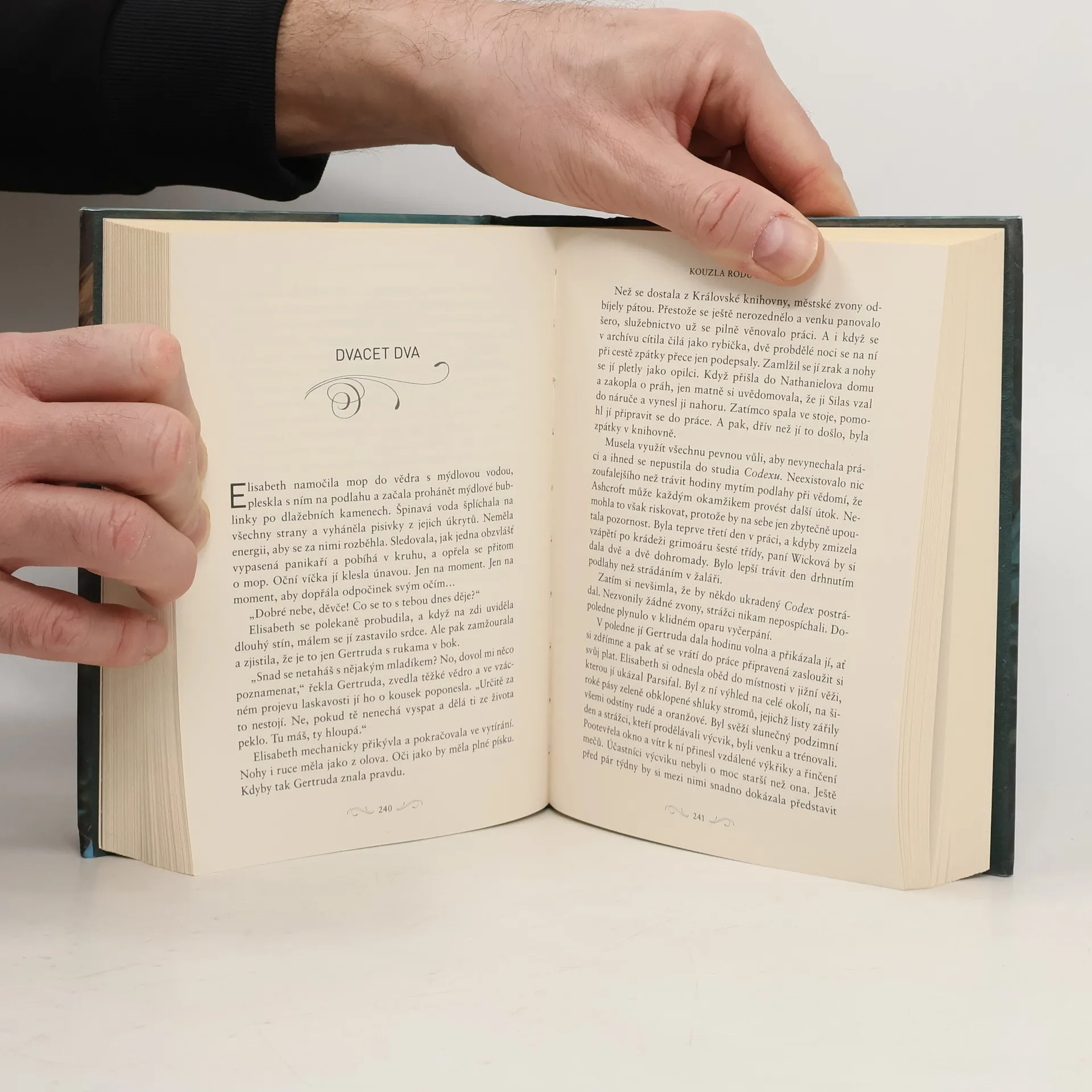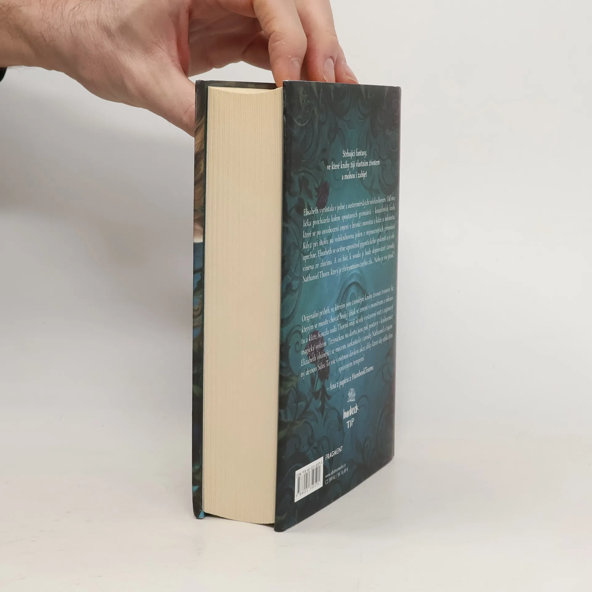 Strhující fantasy, ve které knihy žijí vlastním životem a mohou i zabíjet. Elisabeth vyrůstala v jedné z austermérských veleknihoven. Od malička procházela kolem spoutaných grimoárů – kouzelných knih, které se po osvobození změní v běsnící monstra z kůže a inkoustu. Když při útoku na veleknihovnu jeden z nejmocnějších grimoárů uprchne, Elisabeth se ocitne uprostřed gigantického spiknutí a je obviněna ze zločinu. A co hůř, k soudu ji bude doprovázet čaroděj Nathaniel Thorn, který je ztělesněním čirého zla… Nebo je vše jinak?