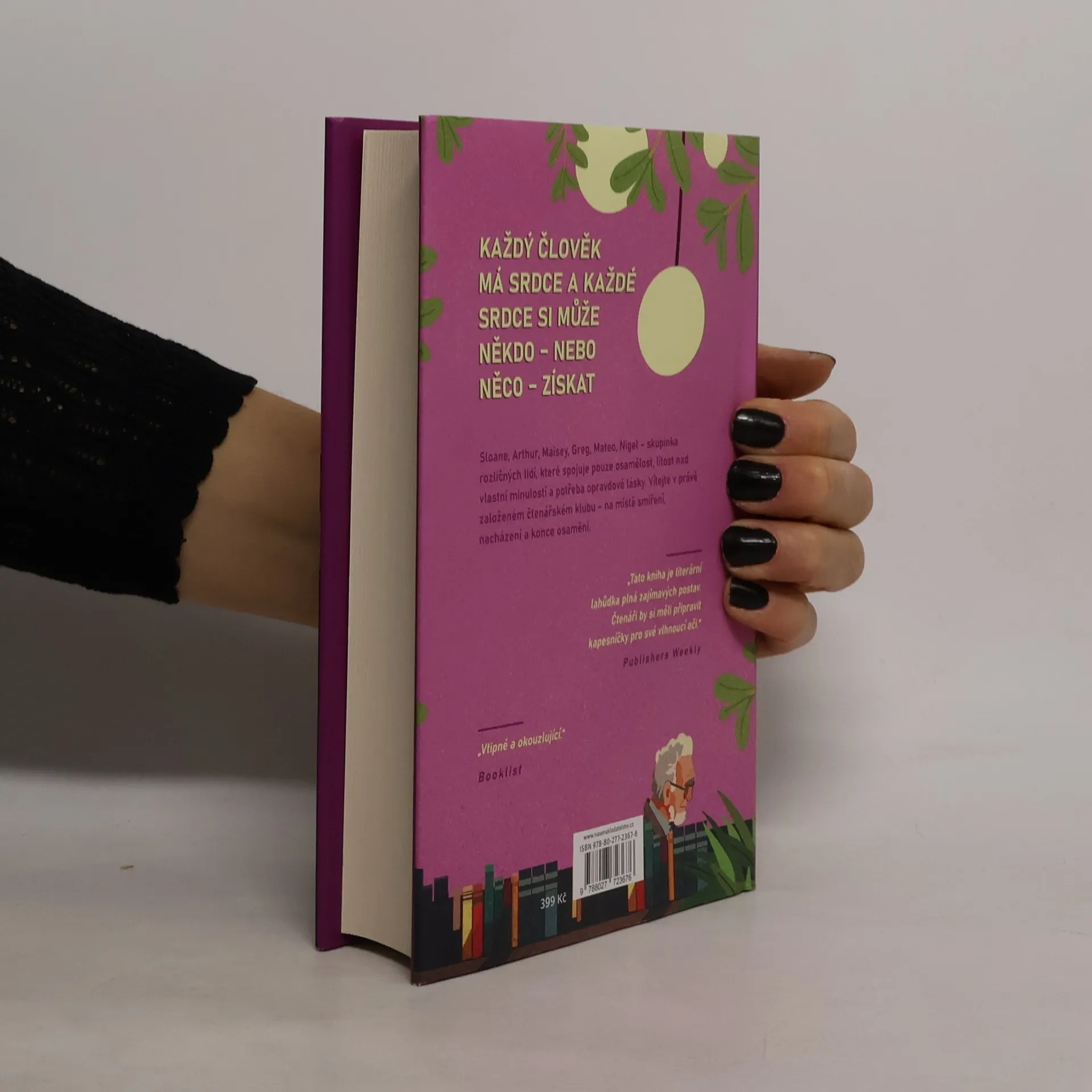 Americký román o knihovnici Sloane, knihách, a hlavně lidech, jimž v životě pomůže čtenářský klub, který Sloane založí kvůli svému oblíbenému čtenáři. Sloane Parkerová pracuje jako knihovnice a žije obyčejný spokojený život v obyčejném spokojeném městečku. Nikdy by o sobě neřekla, že je osamělá... Přesto se však každý den těší na okamžik, kdy mezi police s knihami zabrousí starý bručoun Arthur McLachlan a počastuje ji nějakou šťavnatou urážkou. Jejich vzájemné škorpení je pro Sloane nejhezčí chvílí dne, a tak když se Arthur jednou neukáže, knihovnice o něj má obavy a vyrazí za ním. Ve snaze nemocného staříka povzbudit dostane spontánní nápad založit soukromý čtenářský klub, a tak se zrodí skupinka složená z nesourodých lidiček, kteří nikam jinam nezapadají. Čtenářský klub osamělých srdcí se stane místem, kde nečekaně nacházejí radost a přátelství. Ukáže se, že srdce každého z nich si získala nějaká knížka, na jejíchž stránkách se může ztratit - a kde nakonec může být také nalezen. Nakladatelská anotace.
