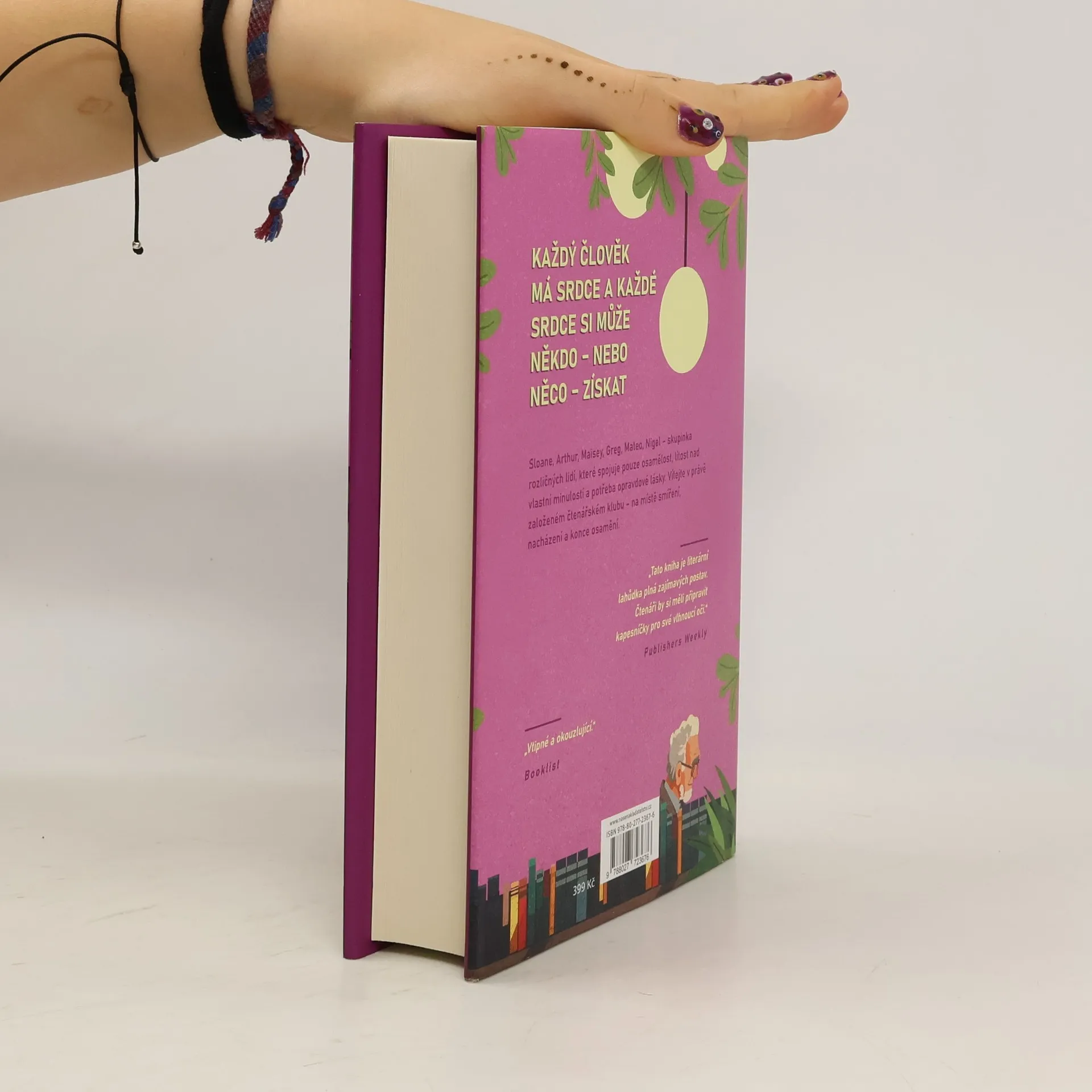 Americký román o knihovnici Sloane, knihách, a hlavně lidech, jimž v životě pomůže čtenářský klub, který Sloane založí kvůli svému oblíbenému čtenáři. Sloane Parkerová pracuje jako knihovnice a žije obyčejný spokojený život v obyčejném spokojeném městečku. Nikdy by o sobě neřekla, že je osamělá... Přesto se však každý den těší na okamžik, kdy mezi police s knihami zabrousí starý bručoun Arthur McLachlan a počastuje ji nějakou šťavnatou urážkou. Jejich vzájemné škorpení je pro Sloane nejhezčí chvílí dne, a tak když se Arthur jednou neukáže, knihovnice o něj má obavy a vyrazí za ním. Ve snaze nemocného staříka povzbudit dostane spontánní nápad založit soukromý čtenářský klub, a tak se zrodí skupinka složená z nesourodých lidiček, kteří nikam jinam nezapadají. Čtenářský klub osamělých srdcí se stane místem, kde nečekaně nacházejí radost a přátelství. Ukáže se, že srdce každého z nich si získala nějaká knížka, na jejíchž stránkách se může ztratit - a kde nakonec může být také nalezen. Nakladatelská anotace.