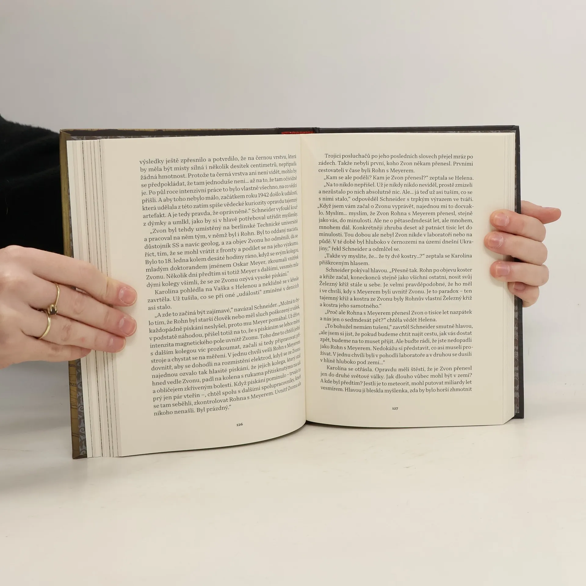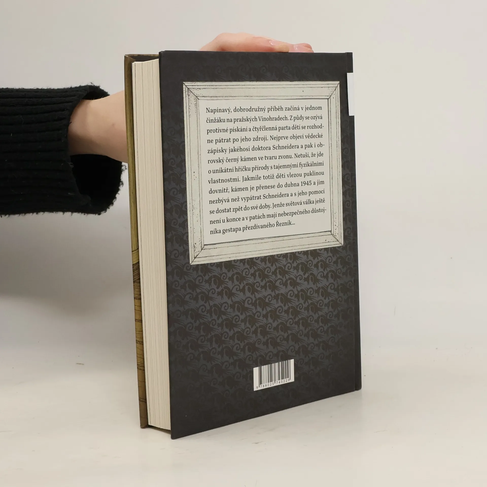 Příběh pro děti, v němž se tři hlavní hrdinové přesunou v čase do roku 1945, do doby druhé světové války, kdy se stávají cílem maniakálního důstojníka gestapa. Dokážou se dostat zpátky do své doby? Napínavý, dobrodružný příběh začíná v jednom činžáku na pražských Vinohradech. Čtveřice kamarádů slyší odněkud shora podivné pískání a vydá se po zvuku. Na půdě objeví vědecké zápisky jakéhosi doktora Schneidera a hlavně zdroj pískání: obrovský černý kámen ve tvaru zvonu. V tělese je puklina dost velká na to, aby se dovnitř mohl protáhnout člověk. A přesně to tři z dětí udělají, jen bázlivý Eda zůstane venku. Vtom se trojice uvnitř stane nedobrovolnými účastníky neobvyklého fyzikálního jevu. Zvon je přesunul do dubna 1945 a jim nezbývá než vypátrat doktora Schneidera a s jeho pomocí se dostat zpět do své doby. Snadné to nebude, světová válka ještě není u konce, navíc jim je v patách maniakální důstojník gestapa přezdívaný Řezník... Nakladatelská anotace.