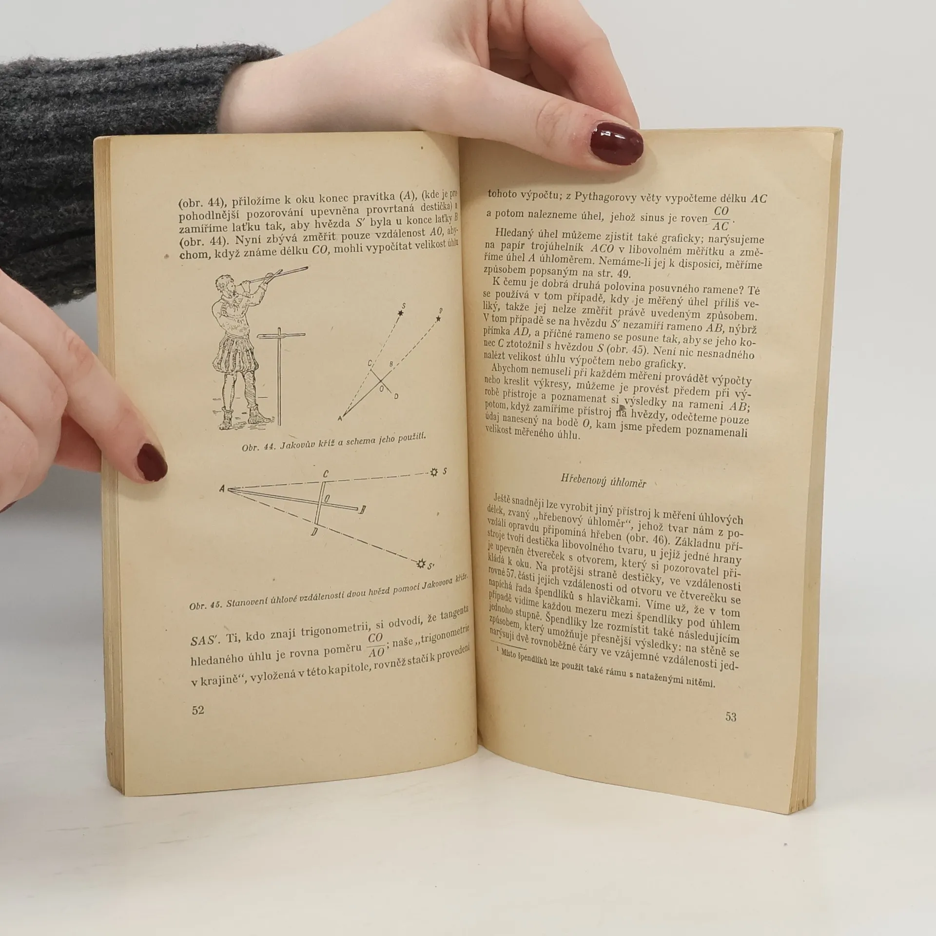 Překladatel vybral z autorovy knihy Zajímavá geometrie několik kapitol, jimiž tento popularizátor zdánlivě šedivých a obtížných oborů vyvedl geometrii "ze stěn třídy na volný vzduch, do lesa, do pole, k řece, na cesty, aby se pod širým nebem dal do řešení geometrických úloh bez učebnic atabulek". Zábavným způsobem a pro všechny, kdo již zapomněli základní poučky trigonometrie nebo s nimi nepřišli vůbec do styku, přivádí na luštění praktických měřických úloh (výška objektů, šířka řek, stanovení vzdálenosti, určení místa v prostoru, výpočet úhlů a pod.), a to s primitivními pomůckami, které jsou při táboření nebo na pochodu vždycky po ruce. S názornými obrázky a vložky z beletrie.