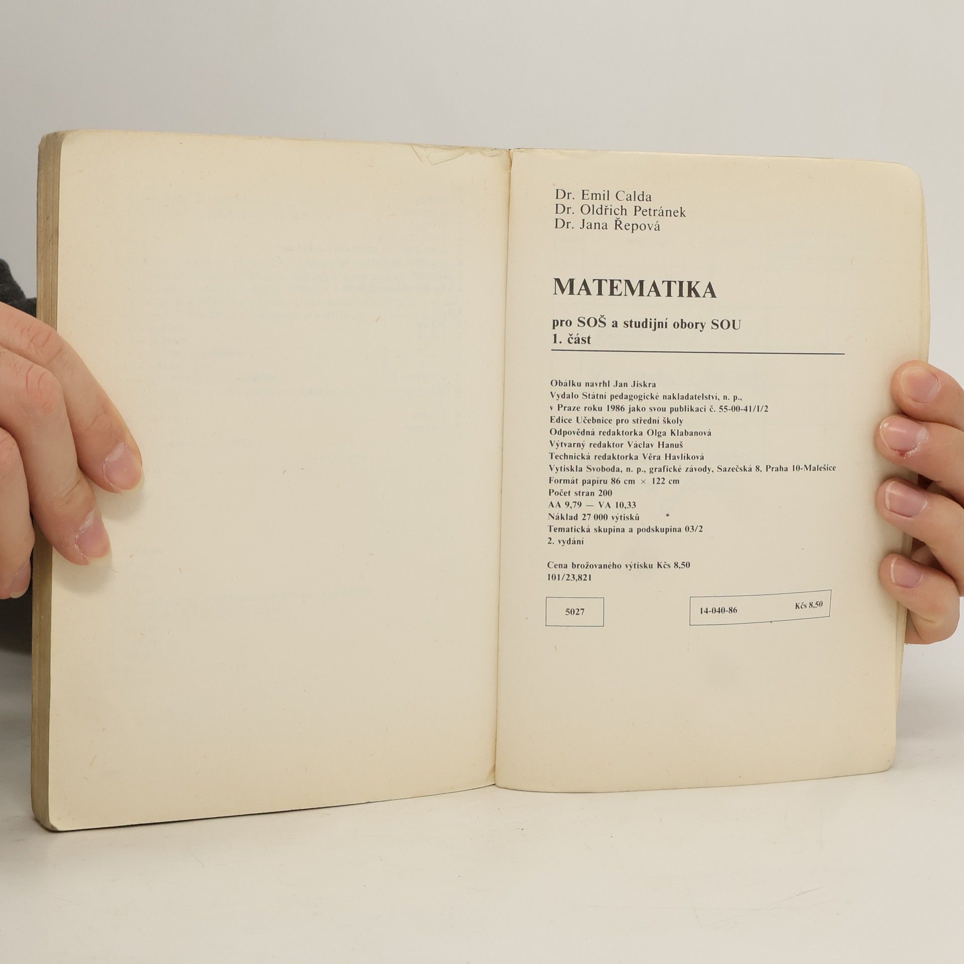 Matematika pro střední odborné školy a studijní obory SOU 1. část, Emil Calda, Oldřich Petránek, Jana Řepová
