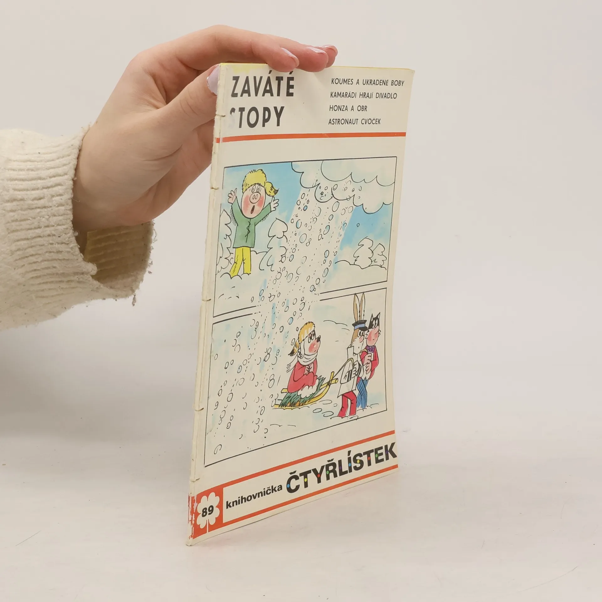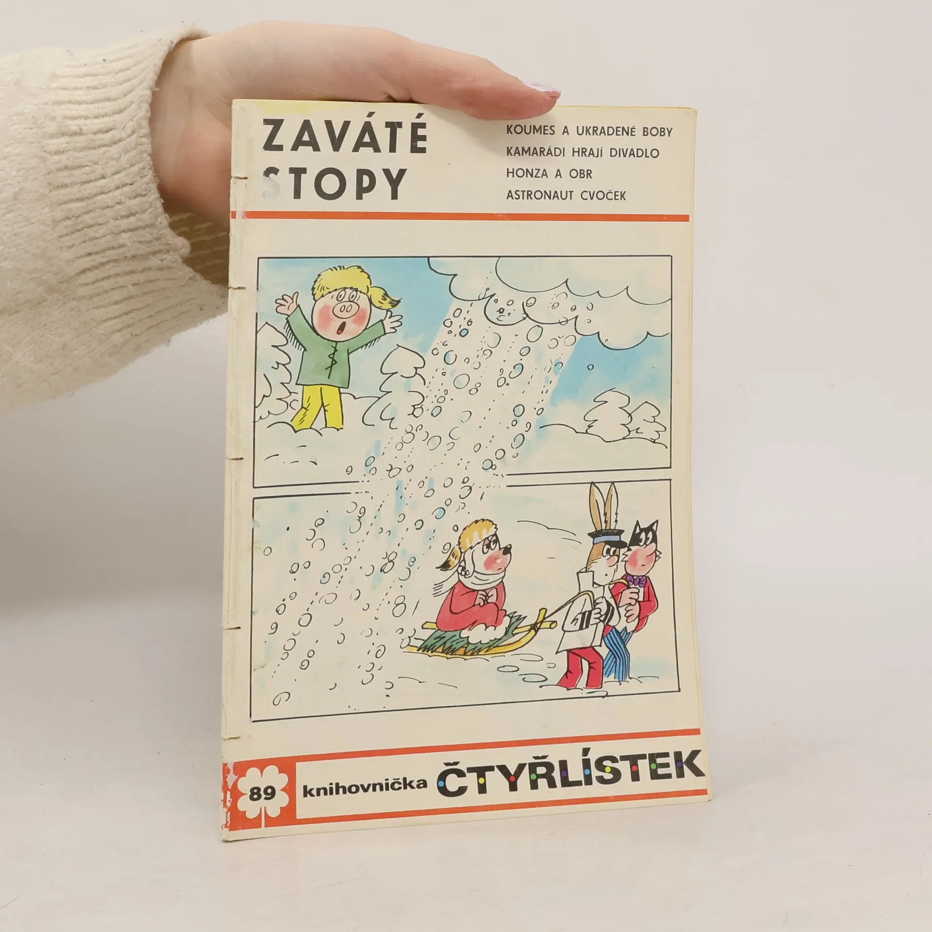 89. díl série. Zaváté stopy - Ljuba Štíplová, Jaroslav Němeček Koumes a ukradené boby - Vladimír Kliman, Sylvie Vodáková Kamarádi hrají divadlo - Stanislav Havelka, Alena Janoušková Honza a obr - Angelika Hanauerová, Věra Faltová Astronaut Cvoček se hlásí - Klobásová válka - Helena Sýkorová, Josef Lamka
