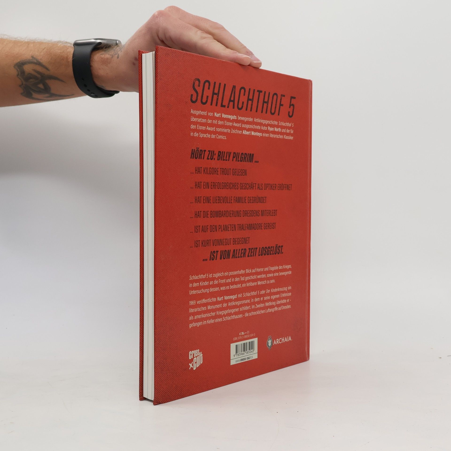 Weltliteratur im Gewand einer Graphic Novel 1969 veröffentlichte Kurt Vonnegut mit SCHLACHTHOF 5 ODER DER KINDERKREUZZUG ein literarisches Monument der Antikriegsromane, in dem er seine eigenen Erlebnisse als amerikanischer Kriegsgefangener schildert. Im Zweiten Weltkrieg überlebte er – gefangen in dem Keller eines Schlachthauses – die schrecklichen Luftangriffe auf Dresden. SCHLACHTHOF 5 ist zugleich ein possenhafter Blick auf Horror und Tragödie des Krieges, in dem Kinder an die Front und in den Tod geschickt werden, sowie eine bewegende Untersuchung dessen, was es bedeutet, ein fehlbarer Mensch zu sein: Billy Pilgrim hat Kilgore Trout gelesen und hat ein erfolgreiches Geschäft rundum die Augenoptik eröffnet. Billy Pilgrim hat eine liebevolle Familie gegründet und die Bombardierung Dresdens miterlebt. Billy Pilgrim ist auf den Planeten Tralfamadore gereist und hat Kurt Vonnegut getroffen. Billy Pilgrim ist von aller Zeit losgelöst. Ausgehend von Kurt Vonneguts bewegender Antikriegsgeschichte SCHLACHTHOF 5 übersetzen der mit dem Eisner Award ausgezeichnete Autor Ryan North (THE UNBEATABLE SQUIRREL GIRL) und der für den Eisner Award nominierte Zeichner Albert Monteys (UNIVERSE!) einen literarischen Klassiker in die Sprache der Comics.