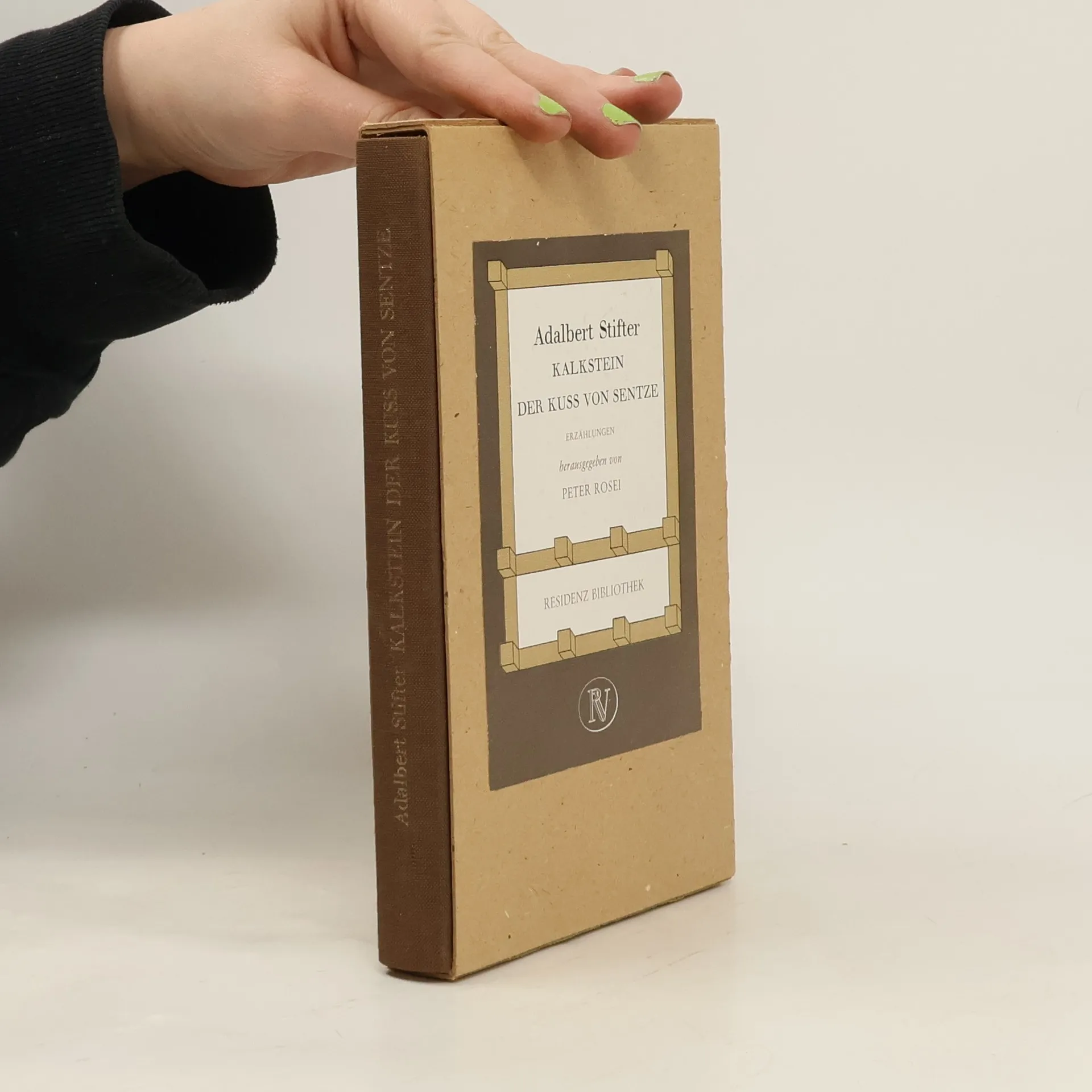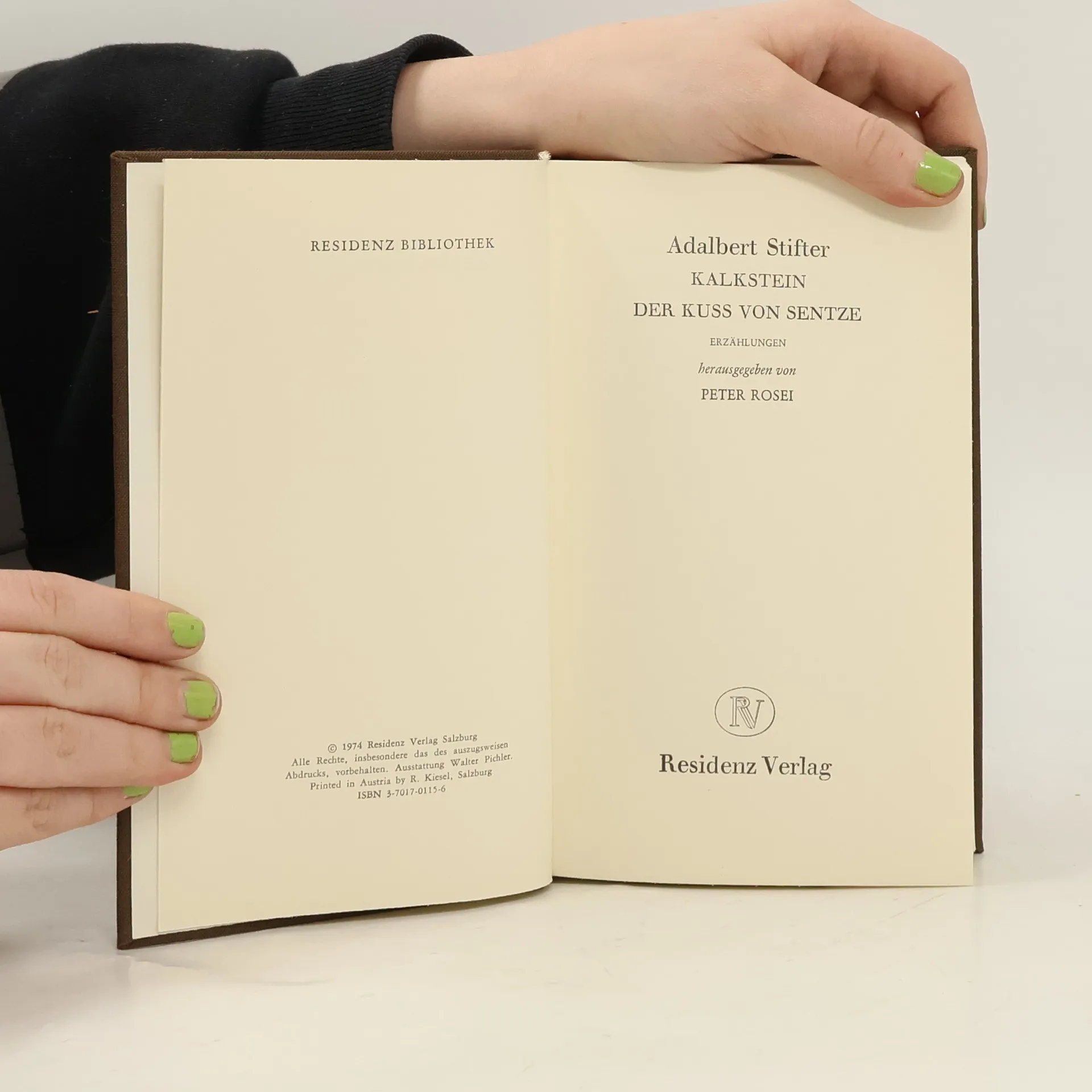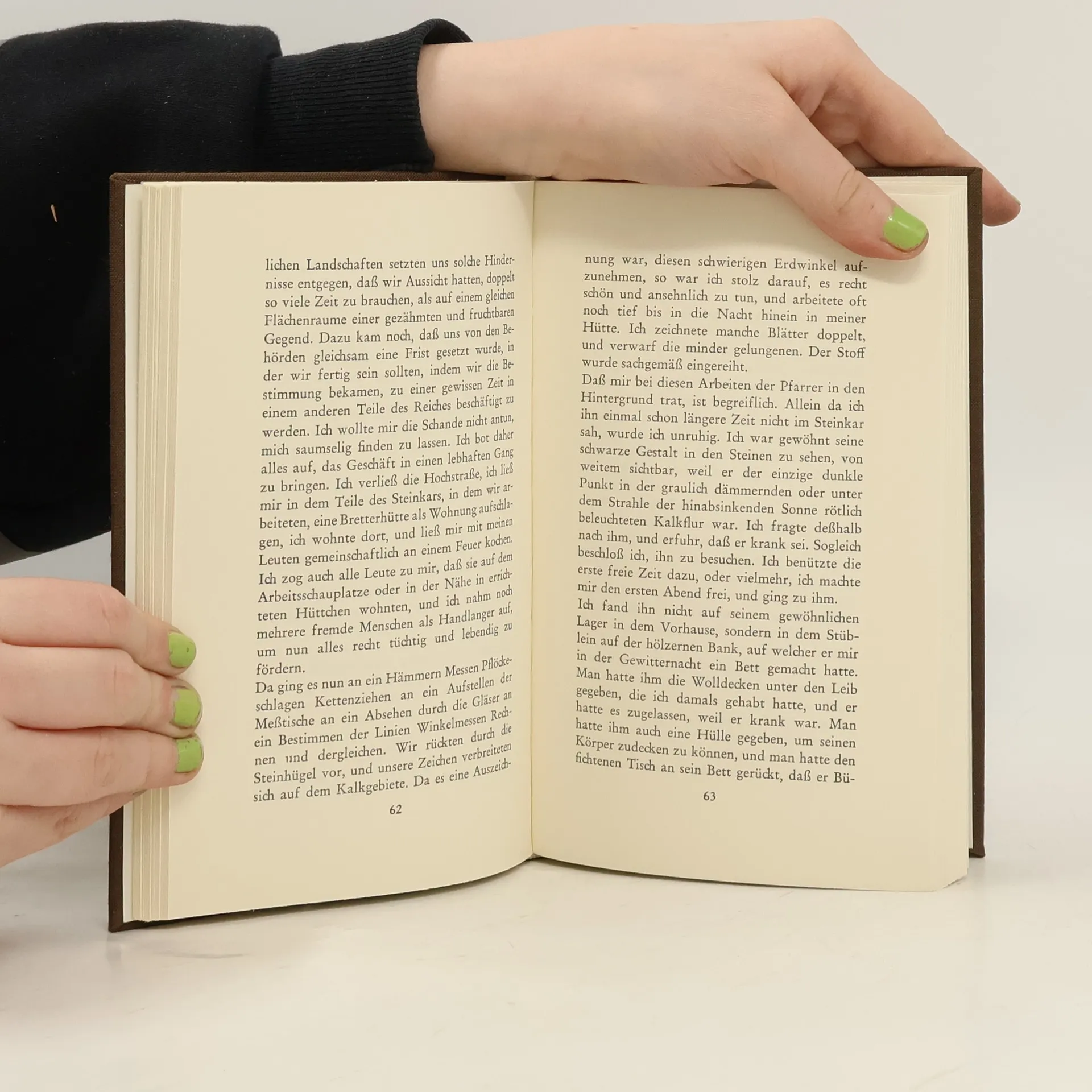Grossdruck Kalkstein ist eine Erzahlung Adalbert Stifters aus der Sammlung Bunte Steine. Es wird die scheinbar authentische Begegnung des Erzahlers mit einem armen Prediger berichtet. Der Erzahler gelangt in seiner Tatigkeit als Landvermesser in eine karge Gegend, in der der Prediger sein Dasein fristet. Im Ansehen seiner Umwelt gilt dieser als geiziger Eigenbrotler, bis sich nach seinem Tod herausstellt, dass sein bescheidenes Leben einzig dem Zweck galt, Geld zur Grundung einer Schule zu sparen, um den Kindern einer abgelegenen Ortschaft den weiten und gefahrvollen Schulweg zu erleichtern."