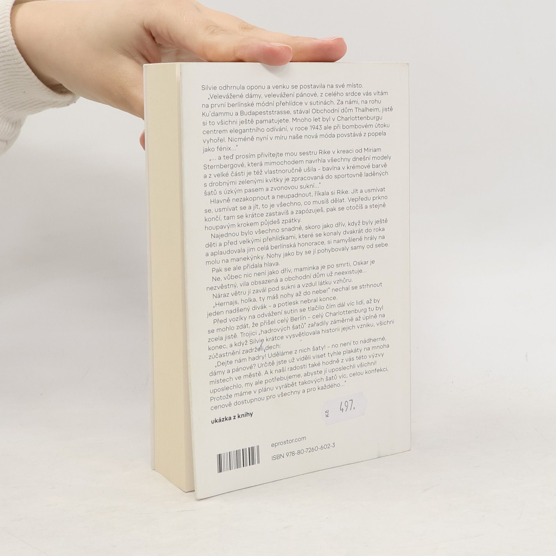 První díl vyprávění z poválečného Berlína o sestrách Thalheimových, jejichž rodině, dříve velice zámožné, se všechny sny o budoucnosti zhroutily. Berlín, květen 1945. Z města zbyly hromady sutin, v troskách jsou i lidské osudy. Ve městě zůstaly téměř jenom ženy - muži jsou mrtví nebo v zajetí, teprve postupně se vracejí - pokud mají kam, a většinou v zuboženém stavu. Ženy musejí shánět jídlo, pečovat o rodinu, postarat se o přežití, ale i odklízet trosky rozbombardovaných domů, udělat město obyvatelným. Rike, Silvie a Flori se ocitají před ruinami rodinného obchodního domu na kdysi luxusní berlínské třídě Kurfürstendamm. Nejstarší Rike touží podnik znovu vybudovat a vnést do ponuré poválečné atmosféry nový život plný barev, slušivých šatů a rafinovaných módních kreací. Jenomže jak - uprostřed bídy, hladu a zimy? Nakladatelská anotace. Kráceno.
