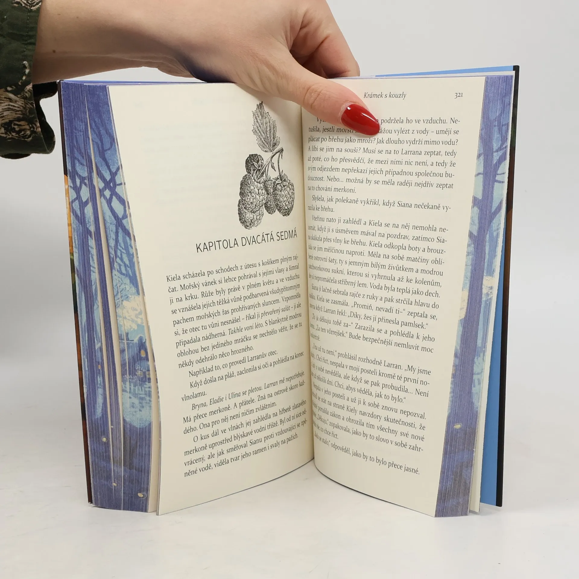 Kiela vždycky měla problém s navazováním vztahů. Jako pracovnice Alysijské Říšské knihovny však naštěstí společně s inteligentní rostlinou jménem Kaz, který jí dělá pomocníka, strávila posledních deset let prakticky jen ve společnosti nejvzácnějších magických knih, jejichž obsah slouží vybrané elitě hlavního města. Když vypukne revoluce a knihovnu zachvátí plameny, Kiela s Kazem sbalí tolik knih, kolik unesou, a uprchnou na její rodný ostrov Kaltrej, který nedoufala, že ještě někdy spatří. Zatímco se tam zabydlují, Kiela napůl s hrůzou zjišťuje, že má poněkud zvědavého – a také velmi pohledného – souseda. Kiela hledá nějaký způsob obživy a přitom zjistí, že na celém ostrově, a dokonce i v místní pekárně něco zoufale schází: marmeláda. Za využití nelegální magie se jí v zahradě brzy objeví spousty zralých malin, které s pomocí staré rodinné knihy receptů úspěšně promění v lahodný džem. Kiela se proto rozhodne riskovat porušování zákona zakazujícího čarování a otevře si na ostrově historicky první a tolik potřebný tajný krámek s kouzly. Laskavý příběh plný magických bytostí a provoněný skořicovými rolkami vás zahřeje na duši a potěší vaše srdce.