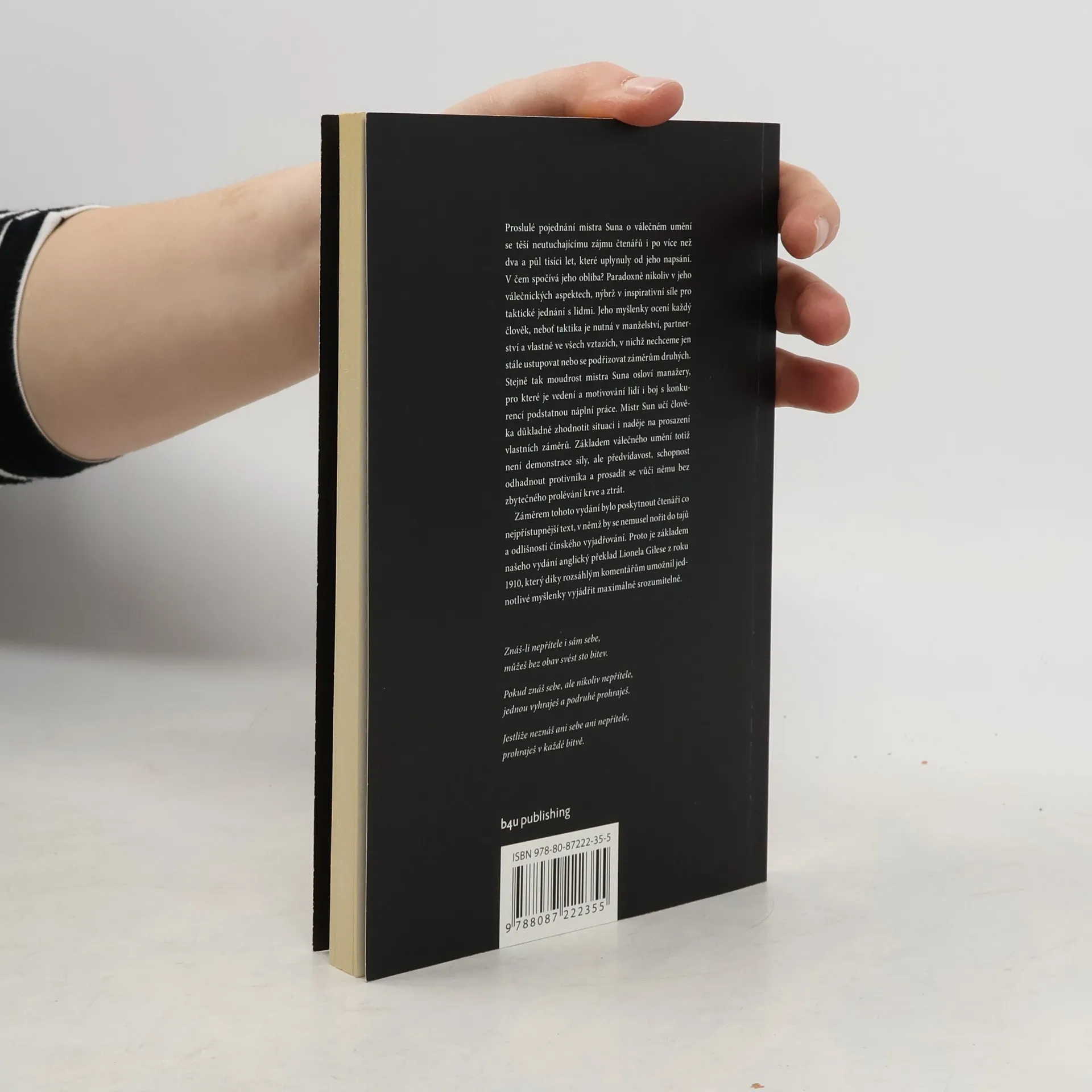 Pojednání Mistra Suna Umění války je nejstarší knihou o strategii boje v dějinách lidstva. Už dva a půl tisíce let představuje pramen inspirace jak pro generály a politiky, tak pro manažery a podnikatele. Toto vydání je výjimečné tím, že starobylé pojednání přímo z čínského originálu přeložil sinolog Vít Vojta a každou kapitolu doplnil aktuálním komentářem zaměřeným na to, jak strategie Umění války využít v podnikání.