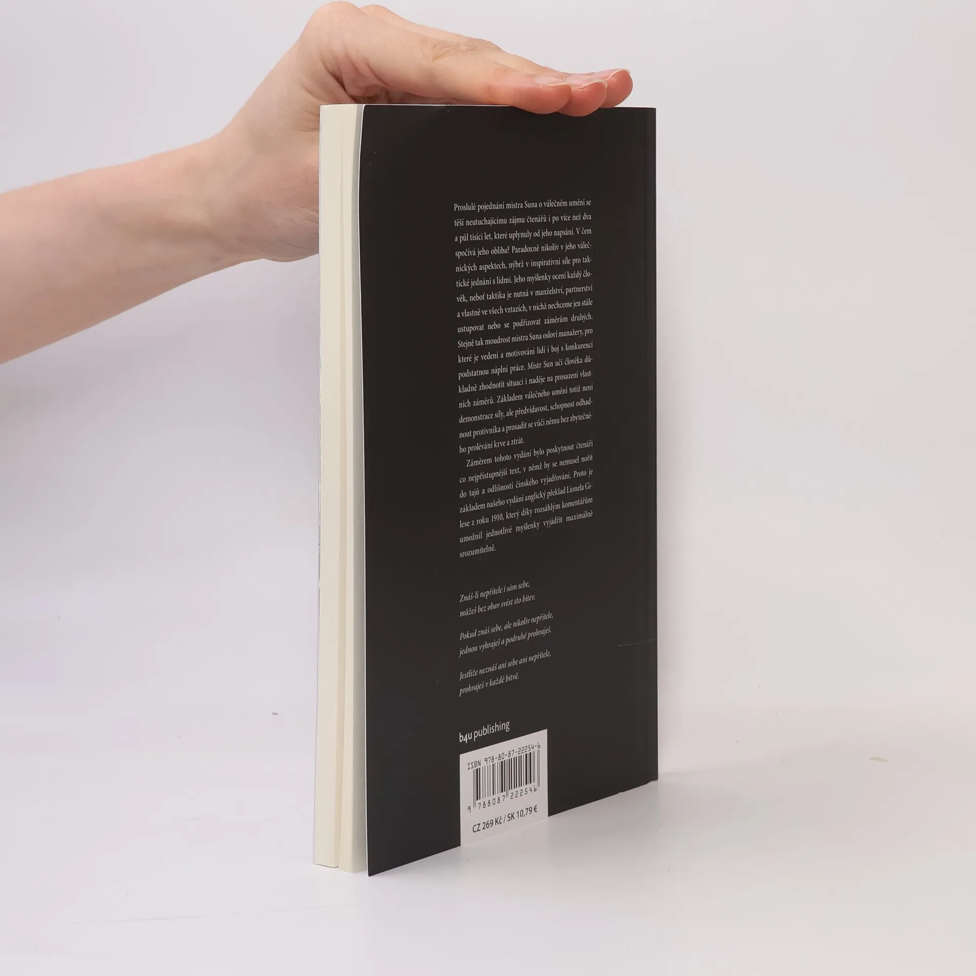 Pojednání Mistra Suna Umění války je nejstarší knihou o strategii boje v dějinách lidstva. Už dva a půl tisíce let představuje pramen inspirace jak pro generály a politiky, tak pro manažery a podnikatele. Toto vydání je výjimečné tím, že starobylé pojednání přímo z čínského originálupřeložil sinolog Vít Vojta a každou kapitolu doplnil aktuálním komentářem zaměřeným na to, jak strategie Umění války využít v podnikání.