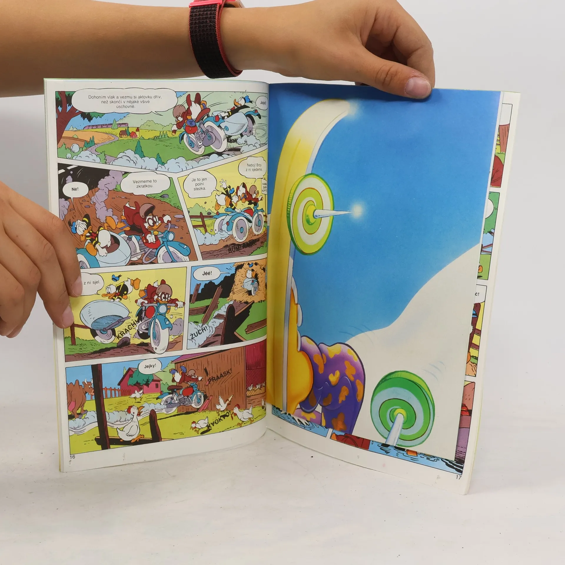 Dětský comicsový časopis obsahuje tyto dobrodružné příběhy: Mickey Mouse: Paleček, Strýček Skrblík: Vlak, Goofy: Mokré trampoty, Babička Kačerová: Tučňák, Pluto: Problém s kočkou.