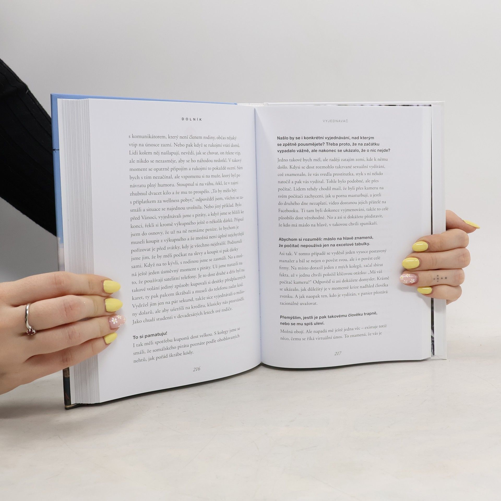 Vítejte v nejtemnějších zákoutích zločinu. Na místech, kde se unáší, vyhrožuje a požaduje výkupné. Provede vás jimi Adam Dolník, který jako jeden z mála lidí na světě vyjednává s únosci, vyděrači, piráty i teroristy. Ze zajetí už dostal desítky rukojmích a při jeho vyprávění mrazí. O vyjednavačích se toho moc neví. A málokdo tuší, že mezi těmi nejlepšími je i Čech. Když mu zazvoní telefon, má jen pár minut na to, aby se sbalil a odletěl do Nigérie, Pákistánu, na Haiti… Jak se k takové práci dostal? Co všechno při ní zažil? Spoustu emocí, napětí a dramatických příběhů. Během kariéry školil agenty FBI i Scotland Yardu. Potýkal se s kriminálními gangy, somálskými piráty, ale třeba i s Islámským státem. Nejednou se ocitl mezi teroristy a v situacích, kdy mu hrozilo, že se sám nevrátí domů. Kde se unáší nejvíc? Jak se vyjednává o lidský život? A jak to lze tyto dovednosti využít v každodenních situacích?