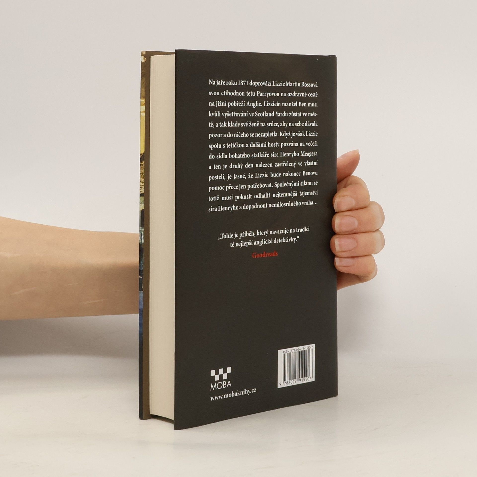Na jaře roku 1871 doprovází Lizzie Rossová svou ctihodnou tetu Parryovou na ozdravné cestě k jižnímu pobřeží Anglie. Lizziein manžel Ben musí kvůli vyšetřování ve Scotland Yardu zůstat ve městě, a tak klade své ženě na srdce, aby na sebe dávala pozor a do ničeho se nezapletla. Když je však Lizzie spolu s tetičkou a dalšími hosty pozvána na večeři do sídla bohatého statkáře Sira Henryho Meagera, který je druhý den nalezen zastřelený ve vlastní posteli, je jasné, že Lizzie bude nakonec Benovu pomoc přece jen potřebovat. Společnými silami se totiž musí pokusit odhalit nejtemnější tajemství sira Henryho a dopadnout nemilosrdného vraha…