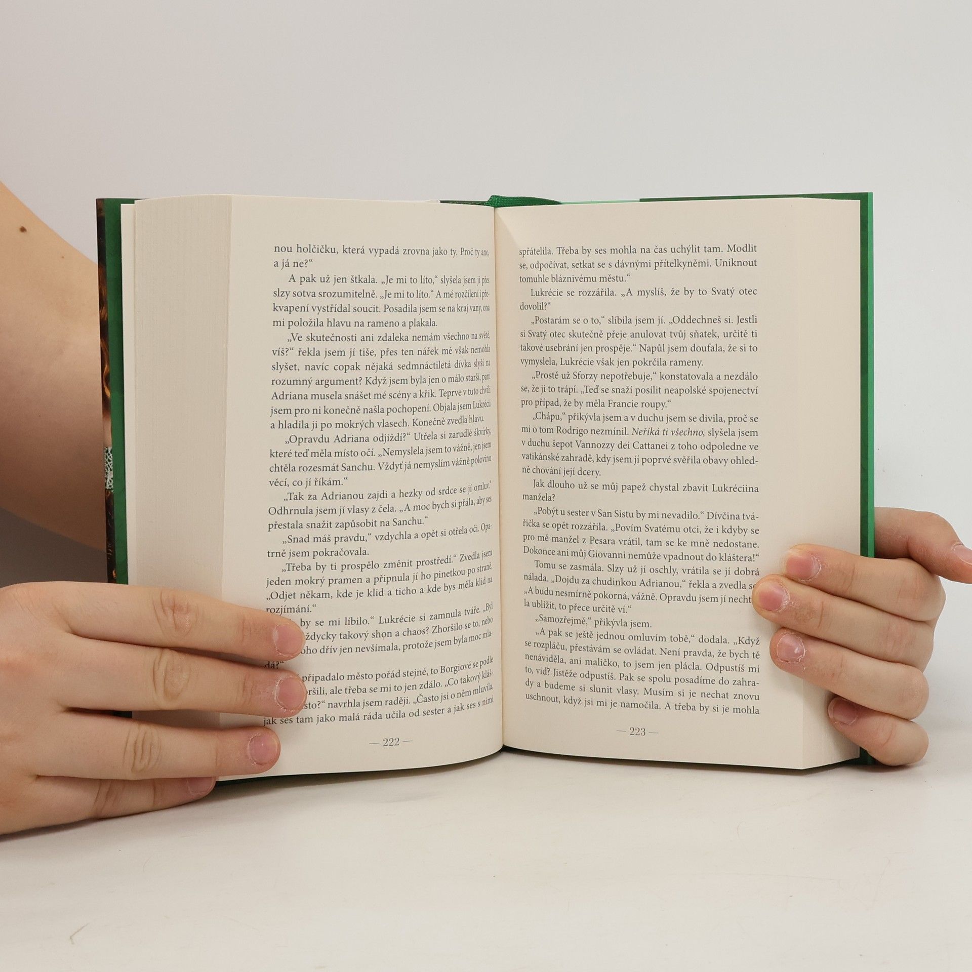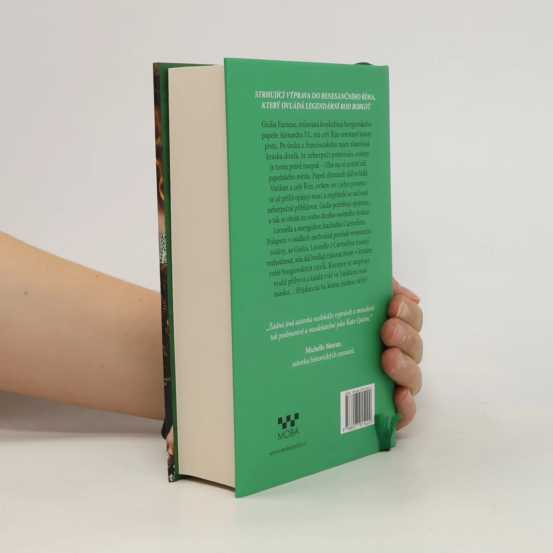 Román je historickou výpravou do renesančního Říma, který ovládá legendární rod Borgiů. Mladá konkubína Giulia riskuje svůj život uprostřed papežského města plného intrik, korupce a vražd. Giulia Farnese je vážená konkubína borgiovského papeže Alexandra VI. a Řím jí leží u nohou. Poté, co jen o vlásek unikla svému vězniteli, si však uvědomí, že nebezpečí, kterému statečně čelila, ještě zdaleka neskončilo. Svaté město Řím je stále v područí Alexandra, který má mimořádný dar získávat si nové a nové nepřátele. Giulia ví, že potřebuje získat důvěryhodné spojence, obrátí se proto na svého osobního strážce Leonella a svou důvěrnici a kuchařku Carmelinu. Všichni tři se ocitají ve víru událostí, odhodláni čelit intrikám a nepravostem mocného rodu... Nakladatelská anotace.
