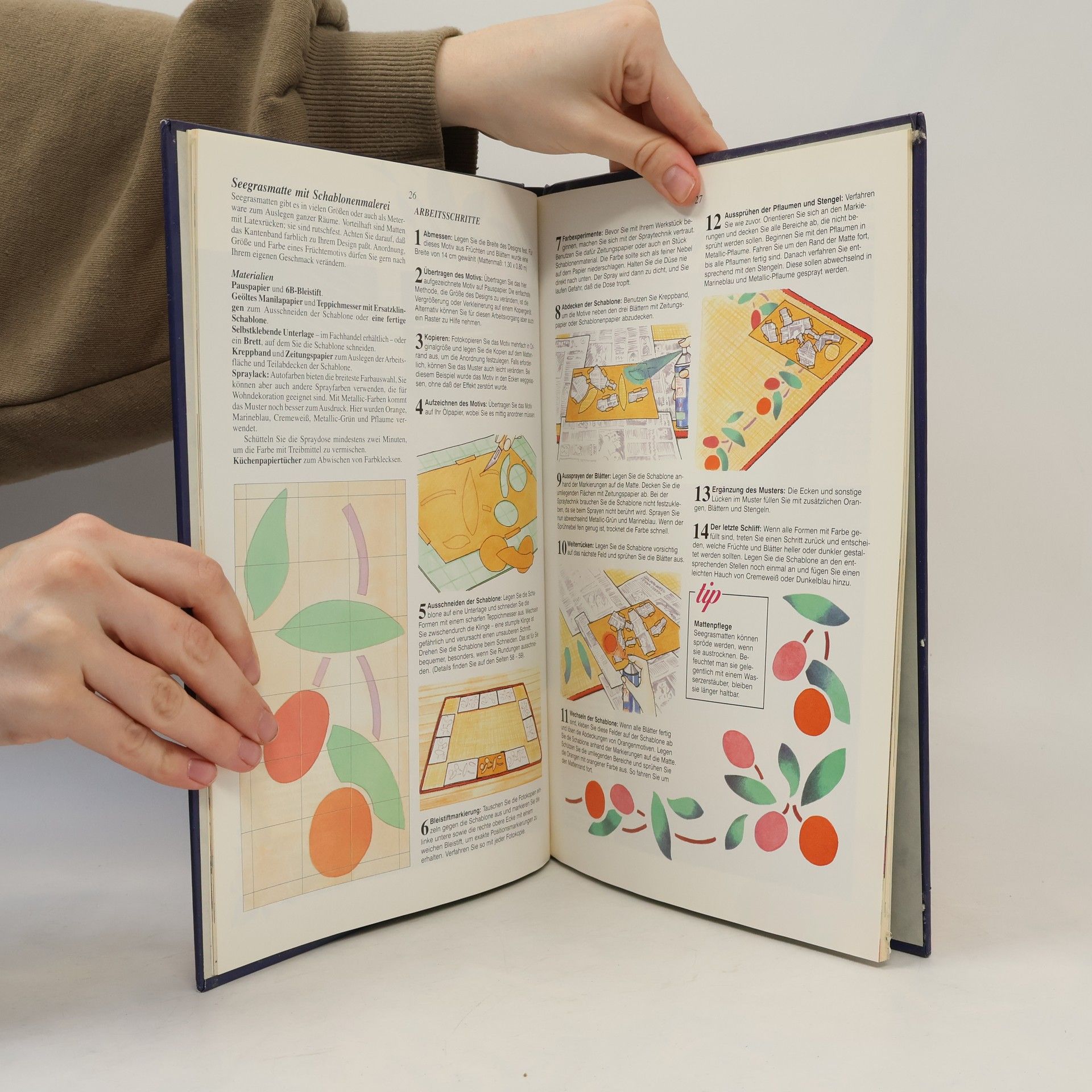 Gut illustrierte Anleitung zum Schablonieren auf Holz, Kunststoff, Keramik, Stoff, Glas, gestrichenen und tapezierten Wänden.