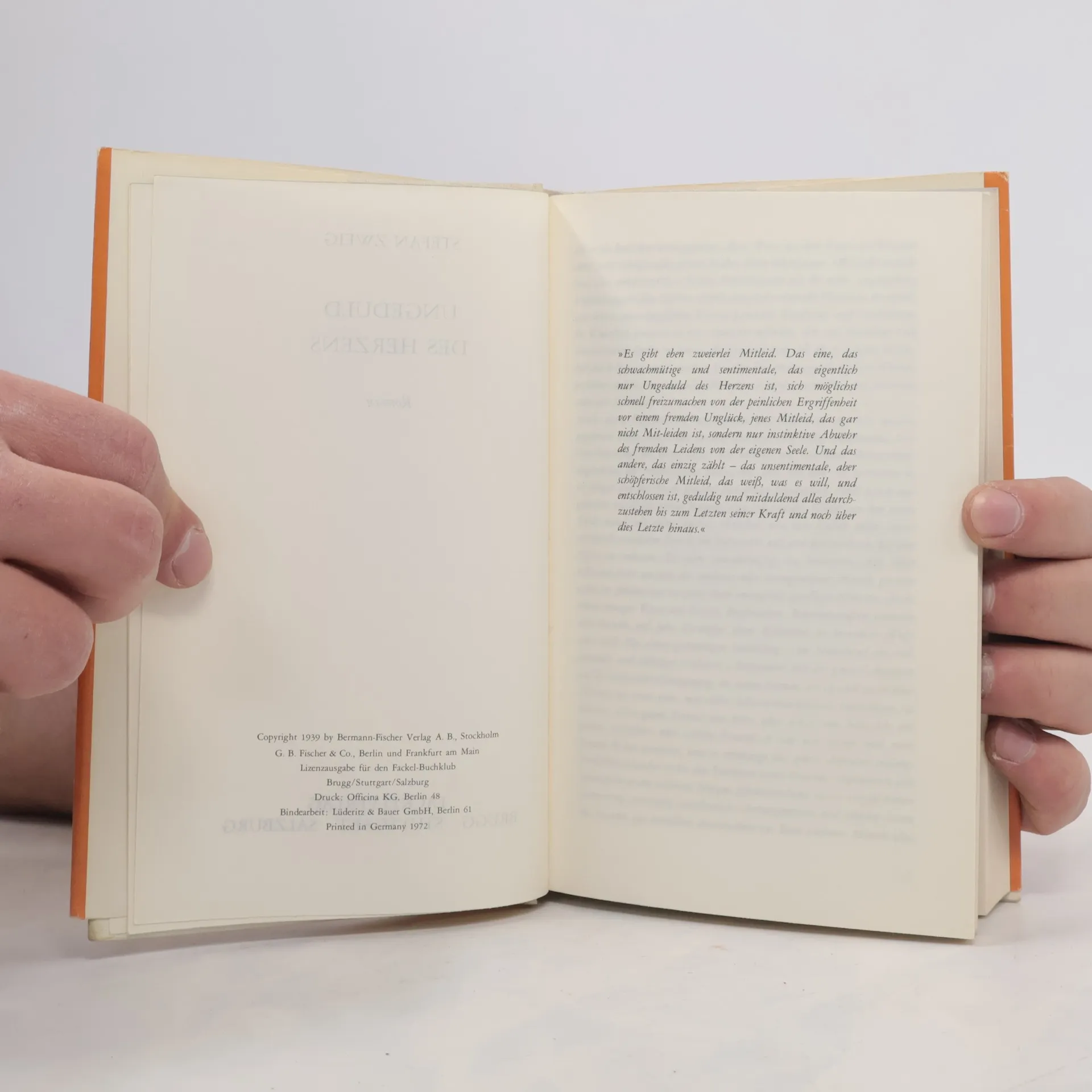 Aus falschem Mitleid, »das eigentlich nur Ungeduld des Herzens ist«, verlobt sich ein junger Leutnant mit einem siebzehnjährigen gelähmten Mädchen. Unfähig, für seine Kurzschlusshandlung geradezustehen, streitet er seinen Kameraden gegenüber die Verlobung ab. Sein Schuldbewusstsein erwacht und er ist bereit, Verantwortung zu tragen. Doch dann erfährt seine Verlobte, dass er sie verleugnet hat ... Mit Daten zu Leben und Werk, exklusiv verfasst von der Redaktion der Zeitschrift für Literatur TEXT + KRITIK.