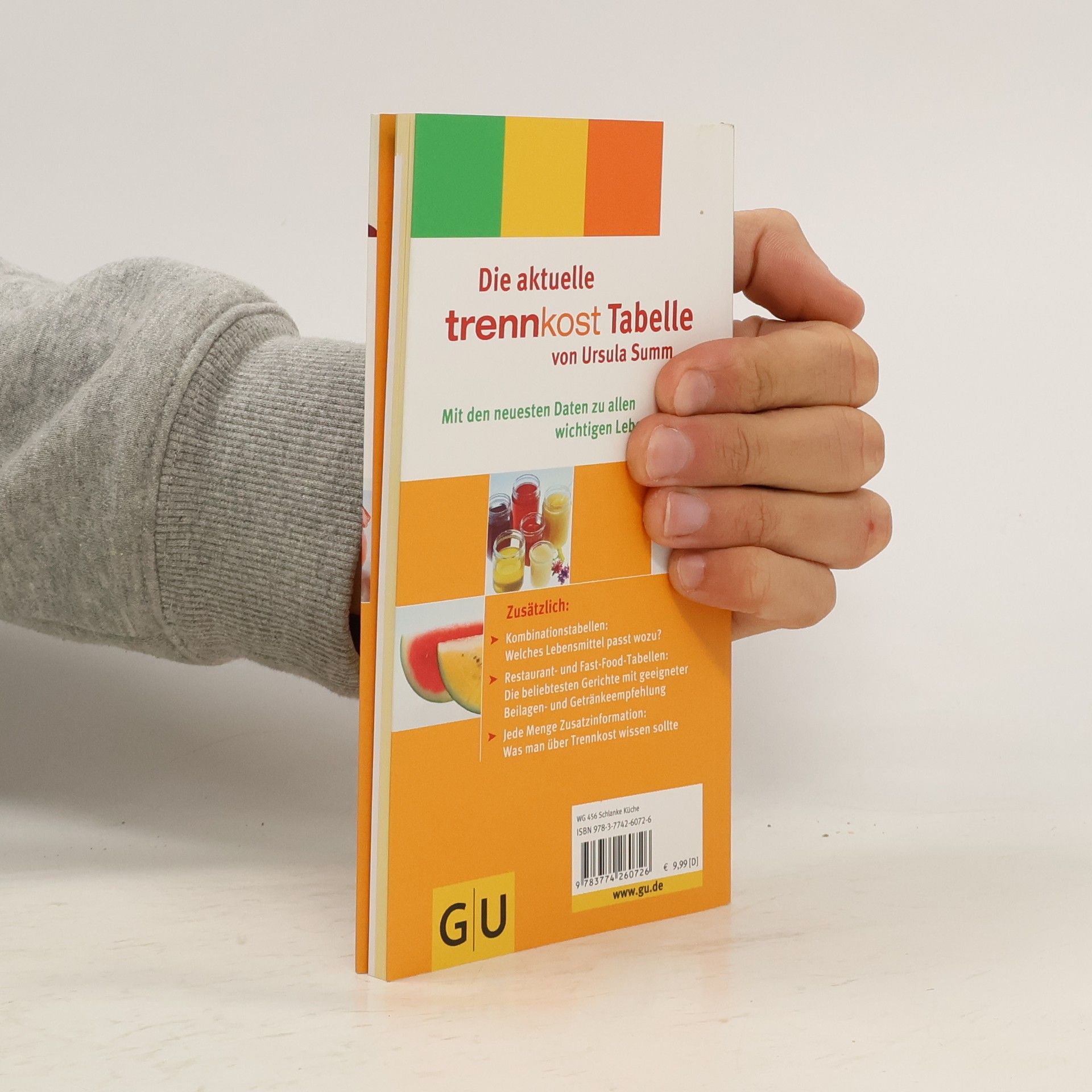 Mit ihrer neuen GU-Trennkost-Reihe stellt Erfolgsautorin Ursula Summ ihre erweiterte Trennkost vor. Die neue Trennkost-Tabelle bietet einen Überblick über die wichtigsten Lebensmittel auf aktuellstem Stand. Klar und übersichtlich durch die etablierten GU-Summ-Trennkost-Farben bietet die Tabelle eine schnelle Orientierung zu Hause, im Supermarkt und Unterwegs: Unterteilt nach einzelnen Lebensmittelgruppen, mit Angabe der Kalorien und Gruppenzugehörigkeit, mit Kombinationstabelle und Extra-Tabelle für typische Restaurant- und Fast-Food-Gerichte. In Verbindung mit dem Einführungstext und der Vorstellung eines idealen Trennkosttages finden so auch Trennkostanfänger die nötige Hilfe und einen leichten Einstieg.