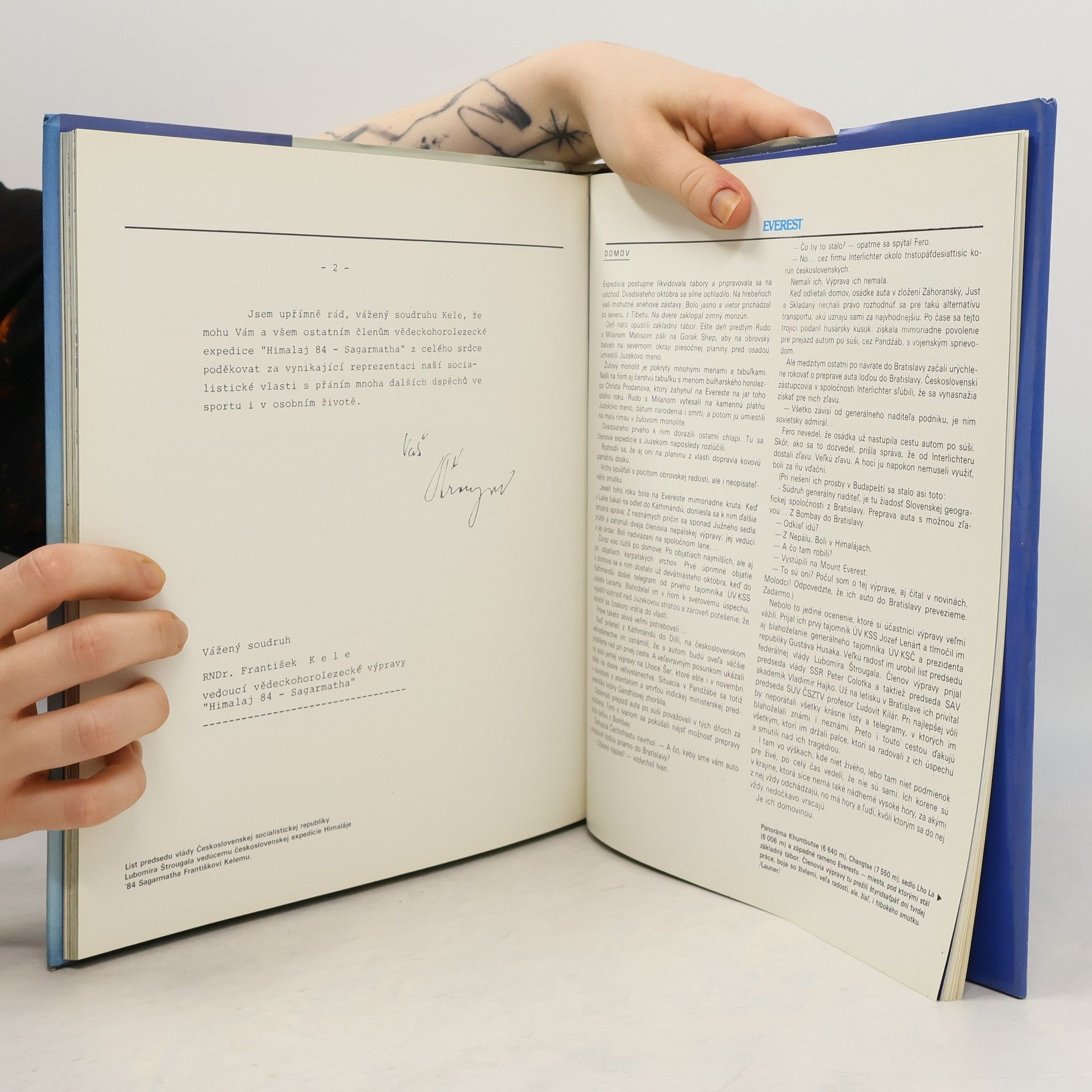 Prvá československá expedícia na najvyššom vrcholu sveta. Slovensky. 105 farebných snímok. Textovú čásť zostavila a sprievodné texty literárne upravila Hana Somorová.