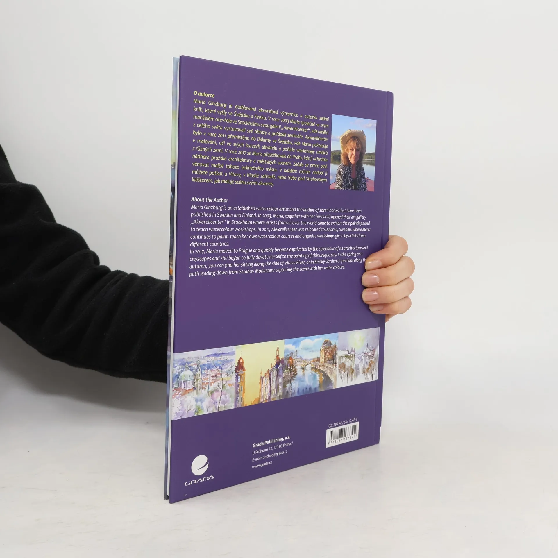 Rozsah a obsah: Kniha je určena všem, kteří malují, nebo se chtějí naučit základům akvarelové malby, a také pro všechny zájemce o umění a milovníky Prahy. Kniha obsahuje základní teorii a praktické tipy s cvičeními a snadno proveditelné, podrobné pokyny, jak malovat toto krásné město. Autorka ukáže, jak dobře zpodobnit nejen známé architektonické prvky, jako jsou kupole, věže, mosty, ale také jak zachytit různé podoby oblohy, vody a odrazy na řece. A jak krásnou Prahu malovat i v noci, v kavárnách, v parcích, v panoramatických výhledech z pražských kopců nebo ze střešních teras. K českému textu je připojený i text v angličtině.