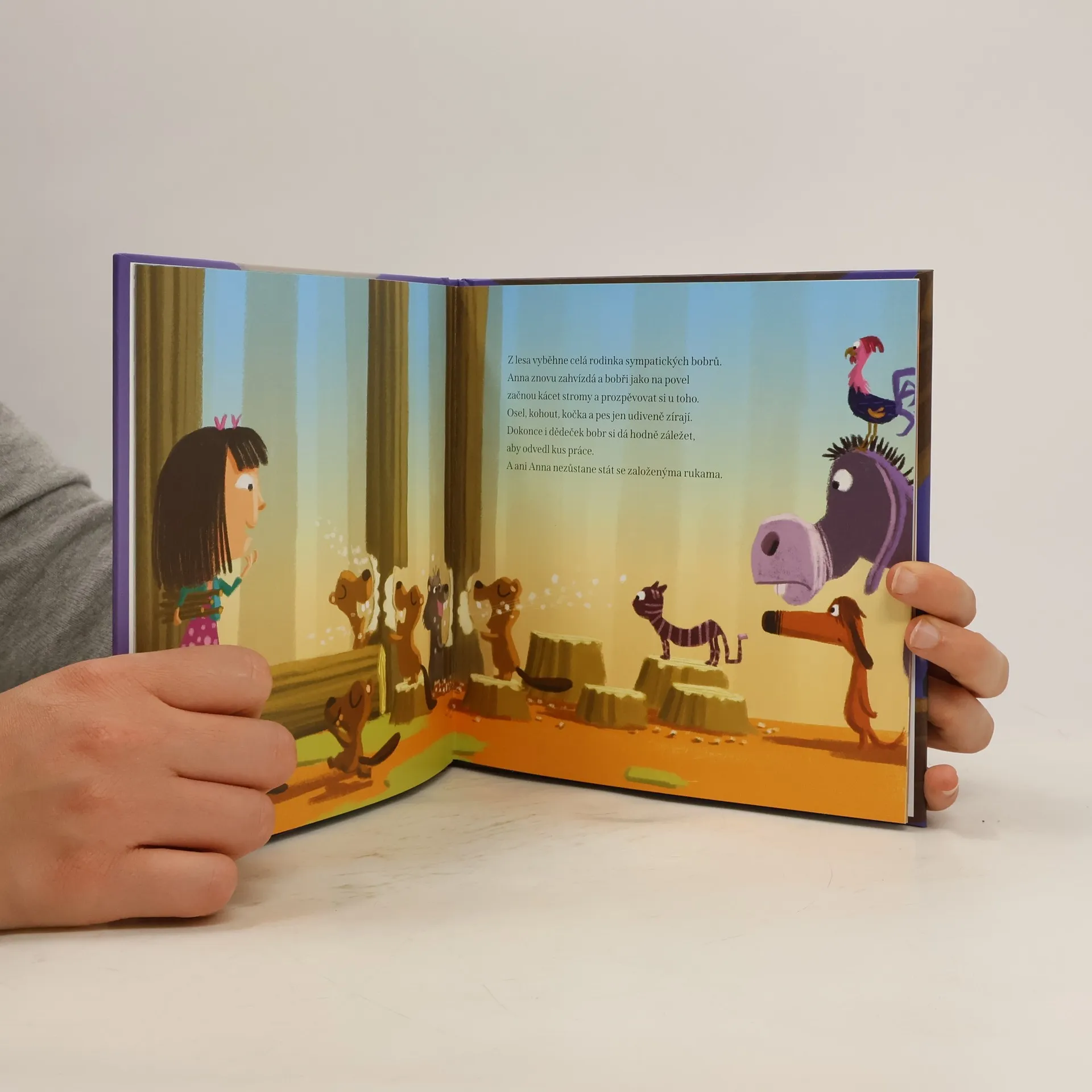 Anna je velice šikovná. Když si čte příběh O muzikantech z Brém, rozhodne se, že nenechá opuštěná zvířátka bloudit lesem. A tak skočí rovnou do pohádky a začne jim pomáhat. Podaří se jí vytvořit zvířátkům nový domov? A jak si poradí s bandou lupičů?