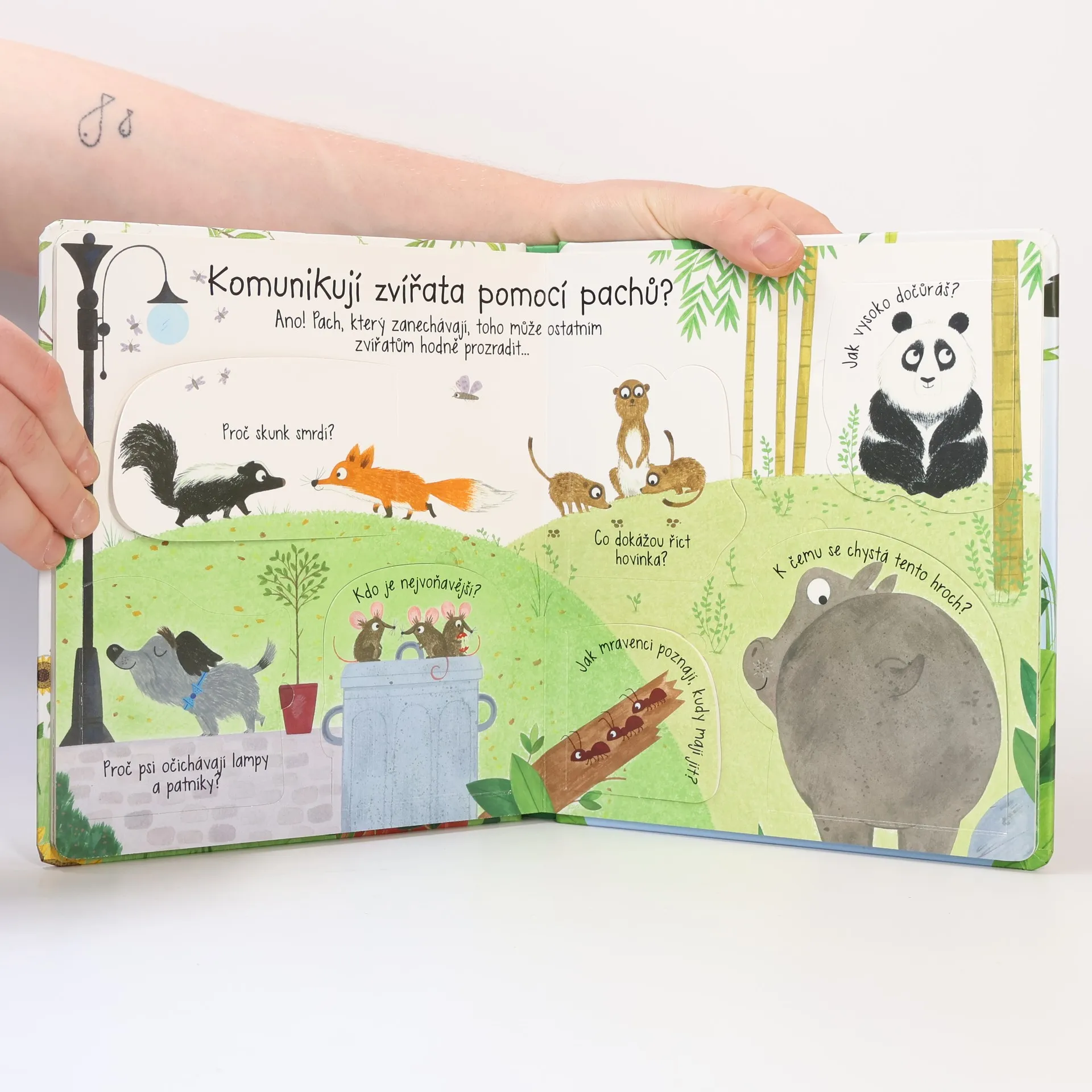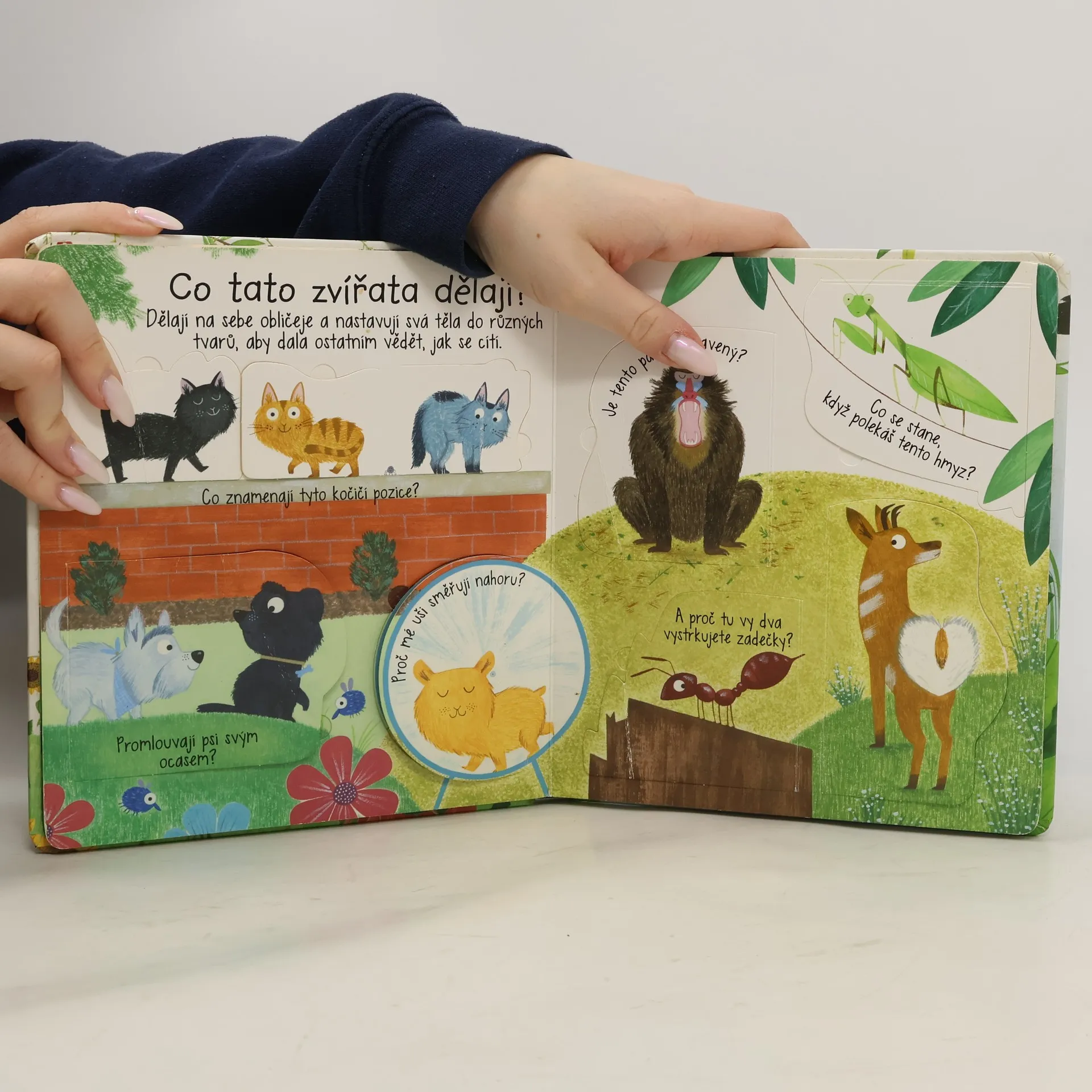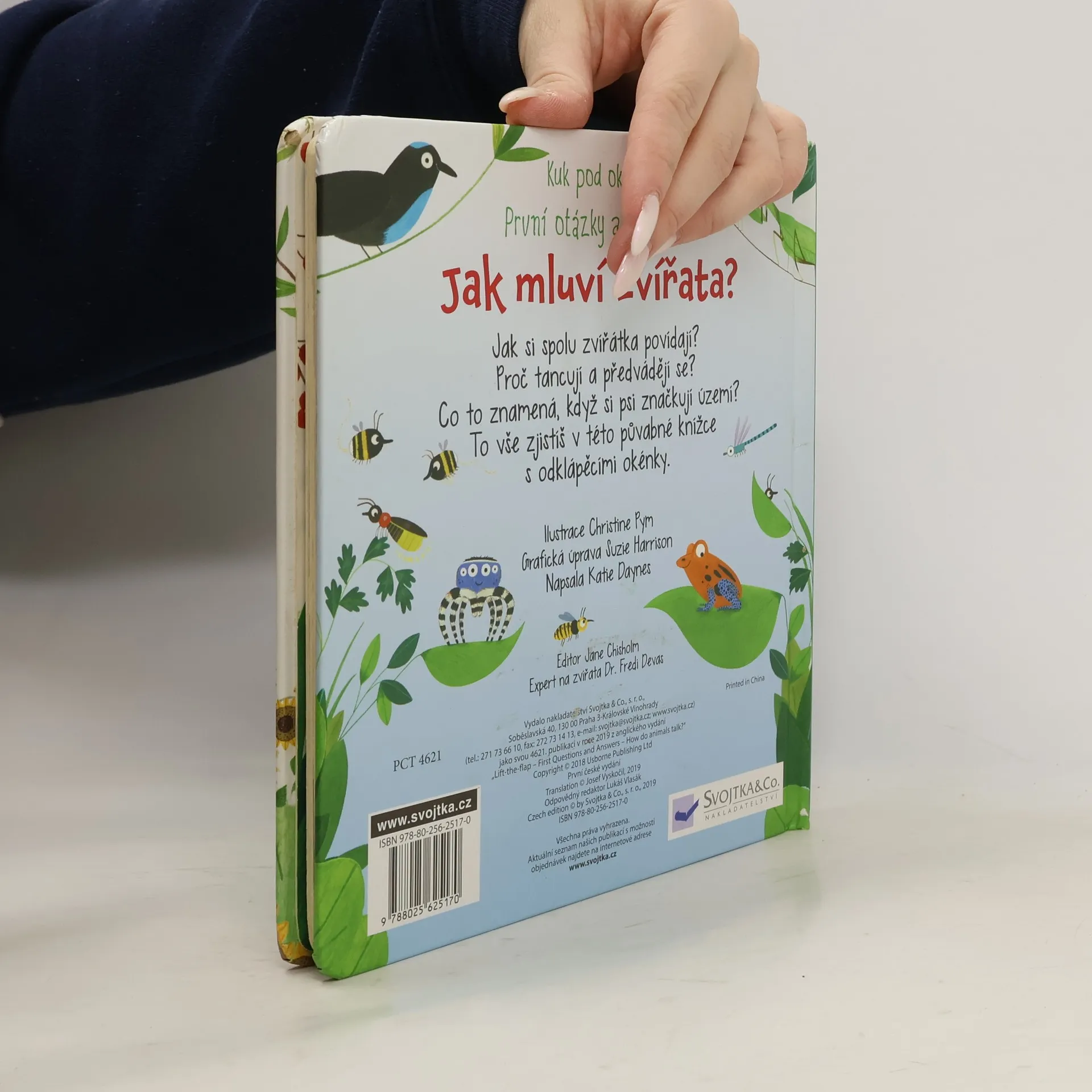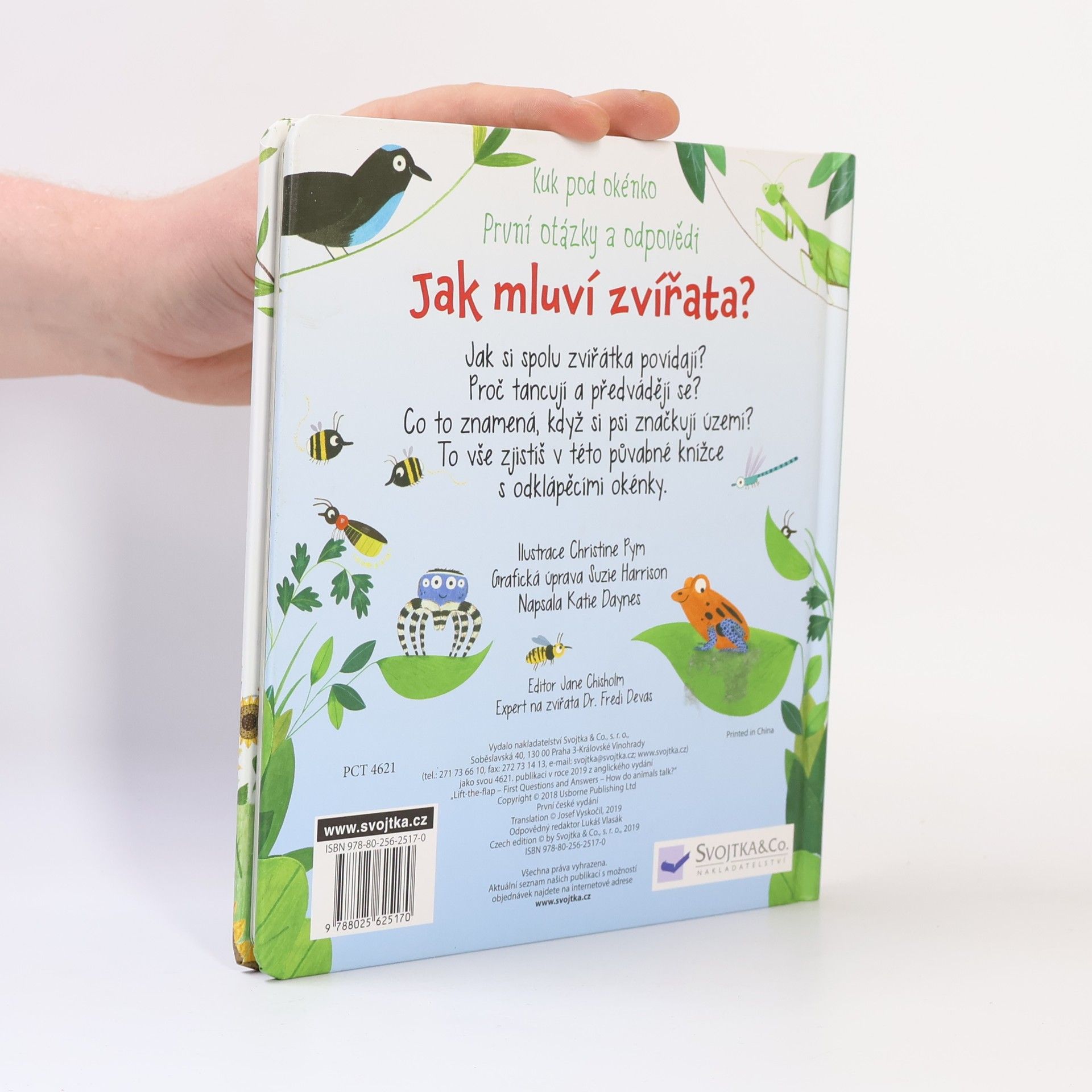 Zvířata mezi sebou komunikují mnoha způsoby. V této bohatě ilustrované knize se spoustou odklápěcích okének se dozvíš, jak takové dorozumívání vypadá. Chodíš často s rodiči na procházky do přírody nebo do zoologické zahrady, máš rád či ráda zvířata a zajímá tě, co znamená jejich podivné chování? V této knize se to dozvíš! Zvířata to dělají proto, že si potřebují něco říct. Ale co všechno používají k tomu, aby se mezi sebou dorozuměla? Používají širokou škálu nejrůznějších zvuků, pohybů a pachů. Některé příklady uvádí tato kniha. Odklop okénka a zjisti, jak spolu "mluví" psi a kočky, ptáci, žáby, hmyz nebo třeba opice. A co taková panda, tučňáci nebo velryba? Kniha nabízí plno zajímavých zvířat a jejich specifické způsoby dorozumívání a poskytne dítěti základní představu o tom, jak je možné, že se spolu tvorové ze zvířecí říše dorozumívají, i když my lidé jejich řeči nerozumíme.
