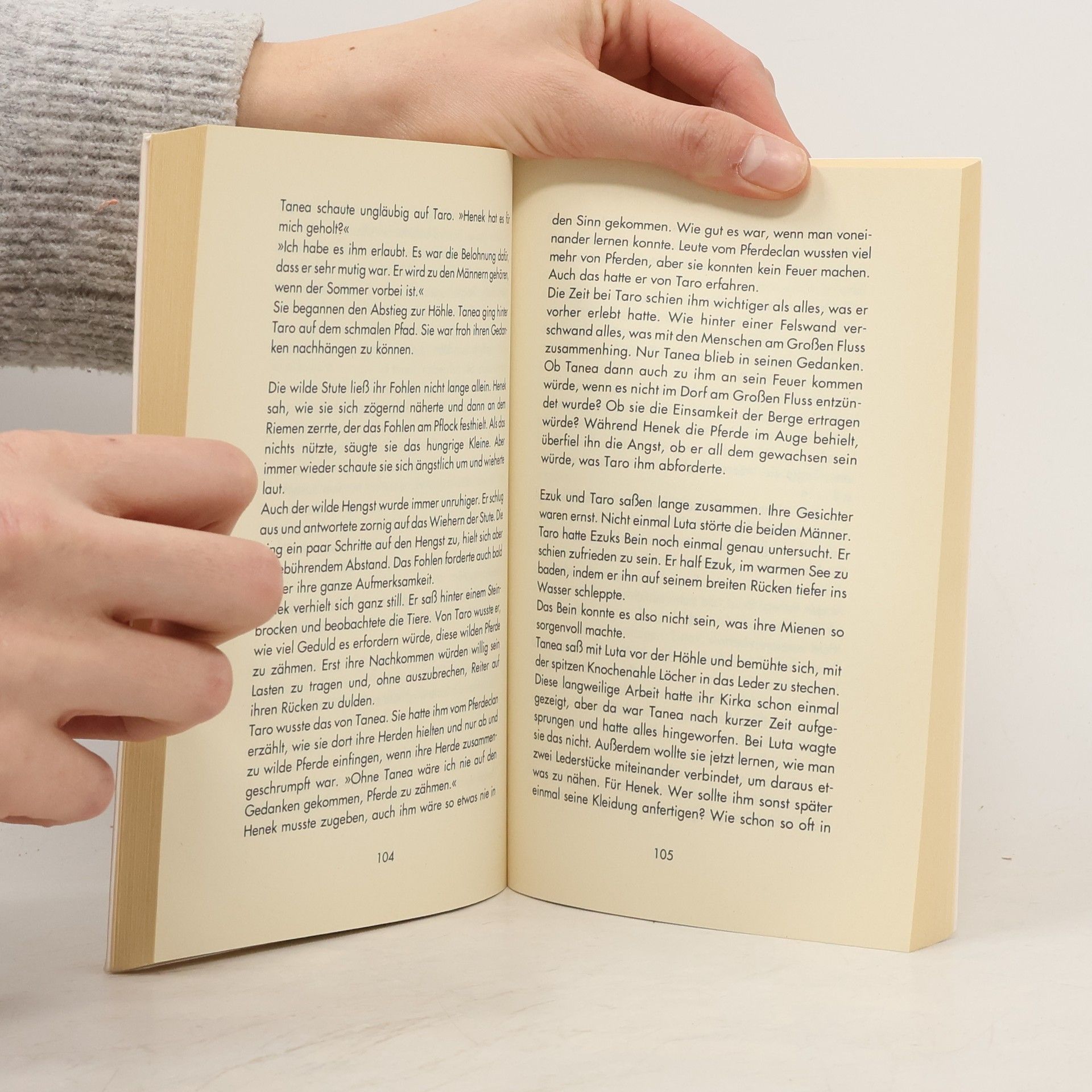 Die junge Tanea zieht nur widerwillig mit ihrem Pflegevater Ezuk zu dessen Familie des Bären-Clans am Großen Fluß. Ebenso spannende Schilderung des Steinzeitlebens wie im Vorgängerband "Tanea-Tochter der Wölfin."