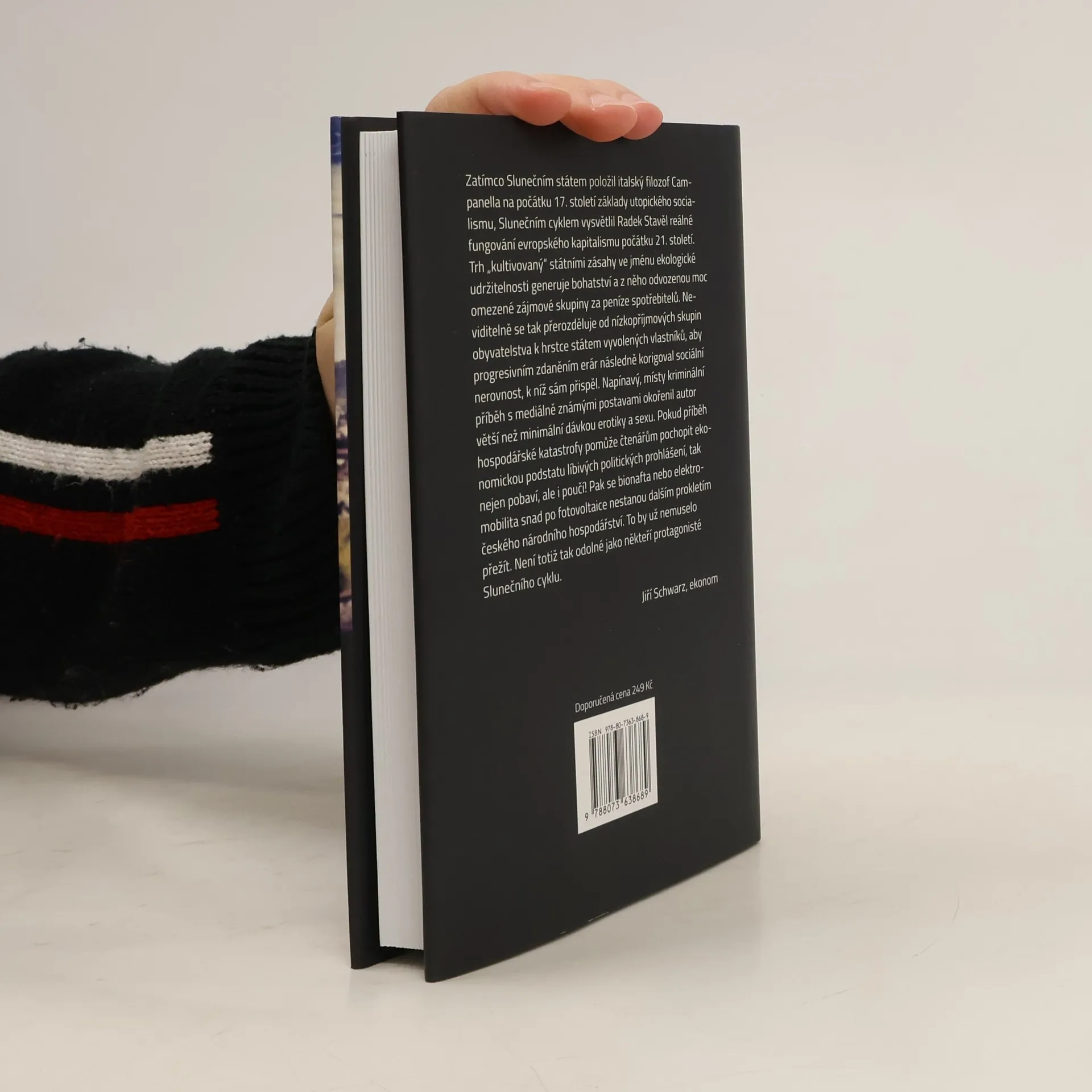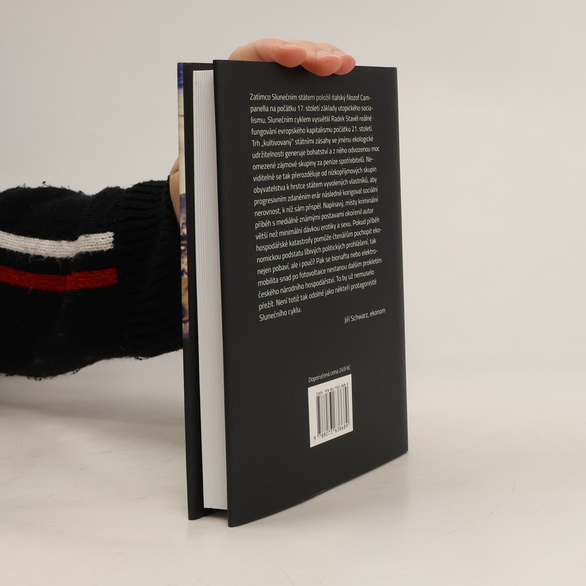 Všechno se točí kolem Slunce. Od žen, které se rády opalují, přes solární byznys, jenž se díky němu stal podvodem století a kvůli němuž se i umírá, až po tajemství vesmírného počasí. Napínavý román prokládaný výpočty a ekonomickými úvahami vyzývá čtenáře k zamyšlení nad chybami, které člověk i společnost stále opakují. Čeká nás doba temna, nebo se vrátíme k osvícenství? Takovou otázku si klade hlavní hrdina, který se po manažerských zkušenostech v české energetice rozhodne sám podnikat v oblasti obnovitelných zdrojů. Ocitne se přitom až nebezpečně blízko legislativnímu procesu, který je nastaven tak, aby přes cenovou deformaci na trhu umožnil gigantický přesun peněz od spotřebitelů k výrobcům elektřiny z fotovoltaiky. Jeho projekt však provází řada problémů, a když nakonec vypadne ze hry, zjistí, že v ohrožení je nejen jeho postavení, ale i život...