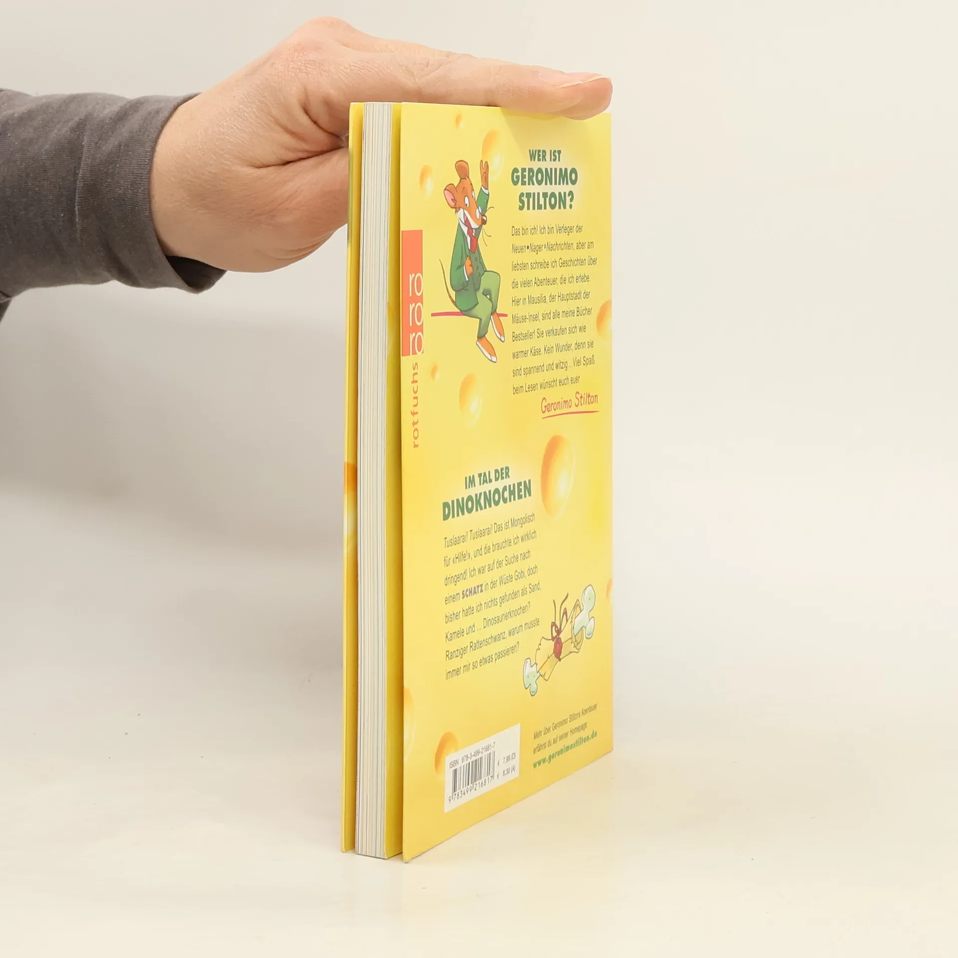 Geronimo Stilton sucht in der Wüste Gobi nach einem Schatz, findet jedoch nur Sand, Kamele und Dinosaurierknochen. Verzweifelt ruft er nach Hilfe. Weitere Informationen über seine Abenteuer sind auf seiner Homepage verfügbar.