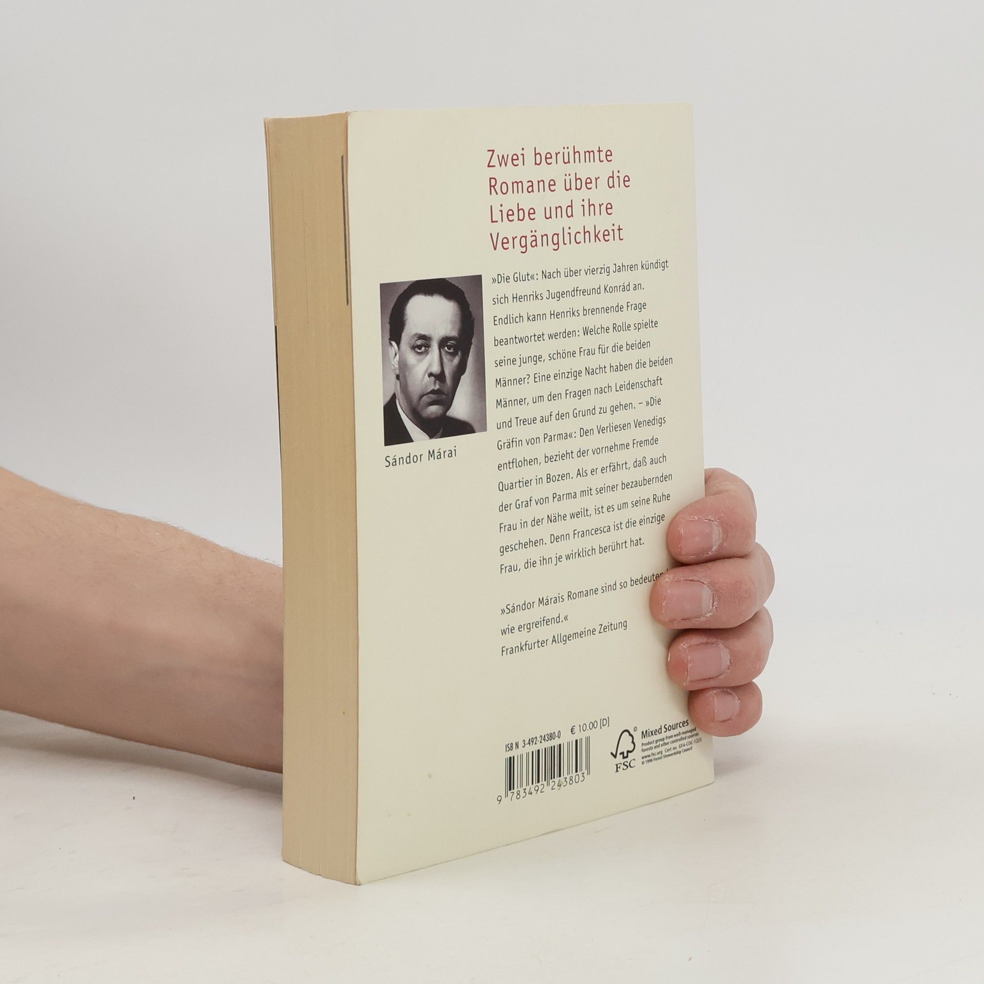'Die Glut': Nach über vierzig Jahren kündigt sich Henriks Jugendfreund Konrád an. Endlich kann Henriks brennende Frage beantwortet werden: Welche Rolle spielte seine junge, schöne Frau für die beiden Männer? Eine einzige Nacht haben die beiden Männer, um den Fragen nach Leidenschaft und Treue auf den Grund zu gehen. – 'Die Gräfin von Parma': Den Verliesen Venedigs entflohen, bezieht der vornehme Fremde Quartier in Bozen. Als er erfährt, daß auch der Graf von Parma mit seiner bezaubernden Frau in der Nähe weilt, ist es um seine Ruhe geschehen. Denn Francesca ist die einzige Frau, die ihn je wirklich berührt hat. 'Sándor Márais Romane sind so bedeutend wie ergreifend.' Frankfurter Allgemeine Zeitung