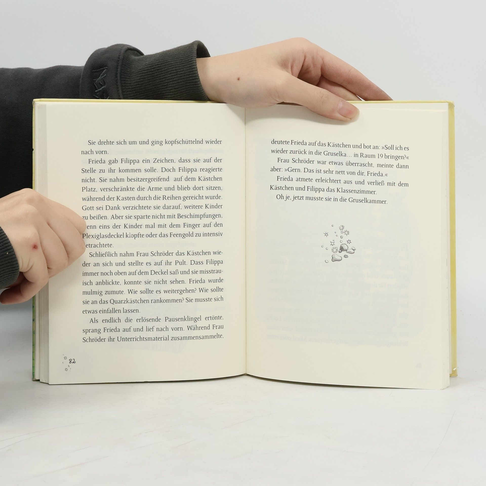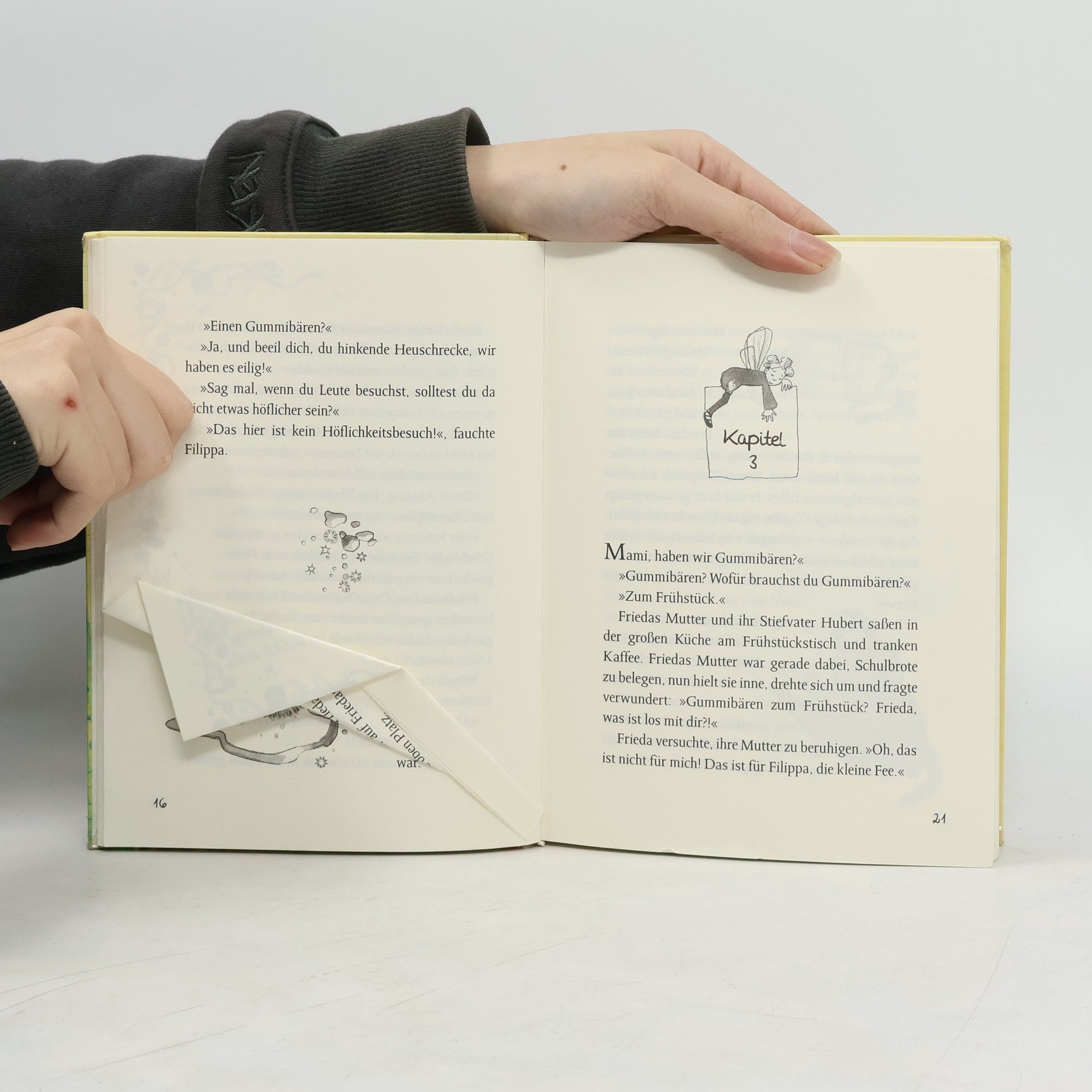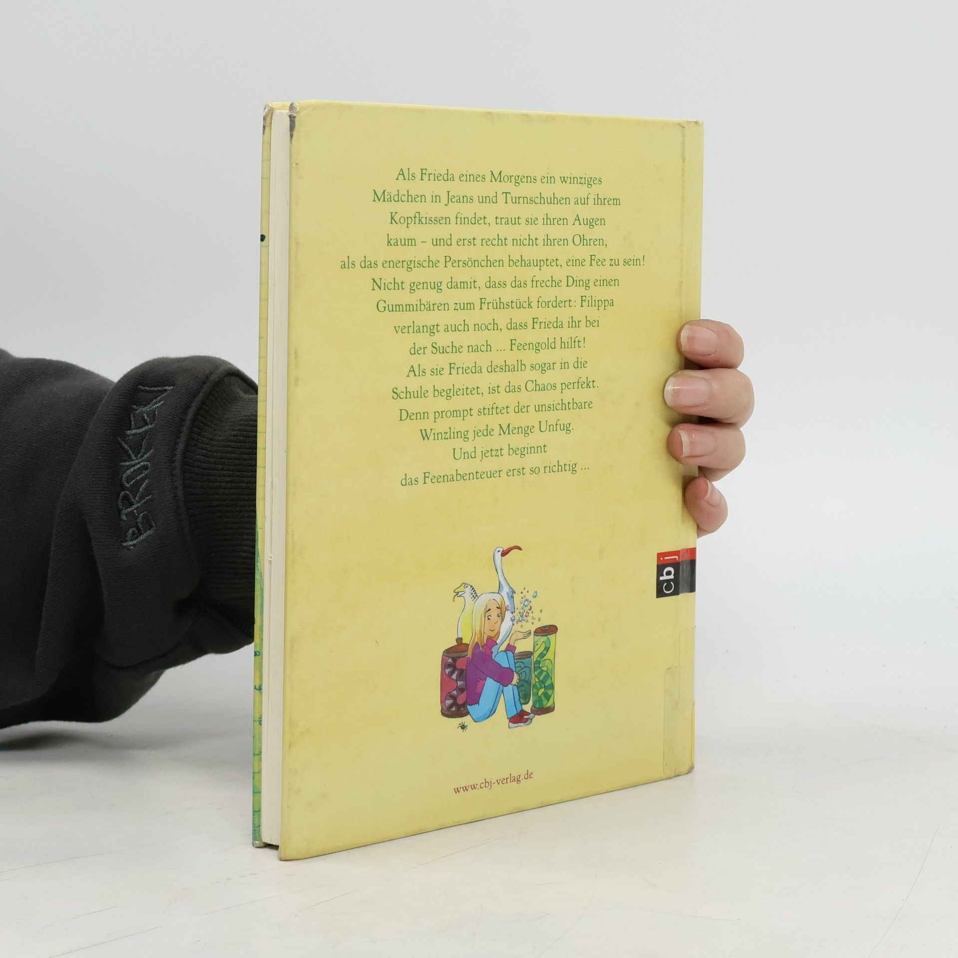 Was ist nur mit Frieda los? Frieda hatte ja schon immer eine blühende Fantasie – aber plötzlich spricht sie mit sich selbst und behauptet, Besuch von einer Fee zu haben! Kein Wunder, dass sie alle für verrückt halten. Wer kann auch schon ahnen, dass hier tatsächlich eine vorwitzige Fee namens Filippa ihr Unwesen treibt – und ziemlich frischen Wind ins Familienleben bringt … Als Frieda eines Morgens ein winziges Mädchen in Jeans und Turnschuhen auf ihrem Kopfkissen findet, traut sie ihren Augen kaum – und erst recht nicht ihren Ohren, als das energische Persönchen behauptet, eine Fee zu sein! Nicht genug damit, dass das freche Ding einen Gummibären zum Frühstück fordert: Filippa verlangt auch noch, dass Frieda ihr bei der Suche nach … Feengold hilft! Denn das braucht Filippa dringend, um ihre Zauberkraft zu aktivieren. Als sie Frieda deshalb sogar in die Schule begleitet, ist das Chaos perfekt. Denn prompt stiftet der unsichtbare Winzling jede Menge Unfug – bis Filippa ausgerechnet mithilfe von Friedas nervigem Stiefbruder Jacob fündig wird. Und jetzt beginnt das Feenabenteuer erst so richtig …
