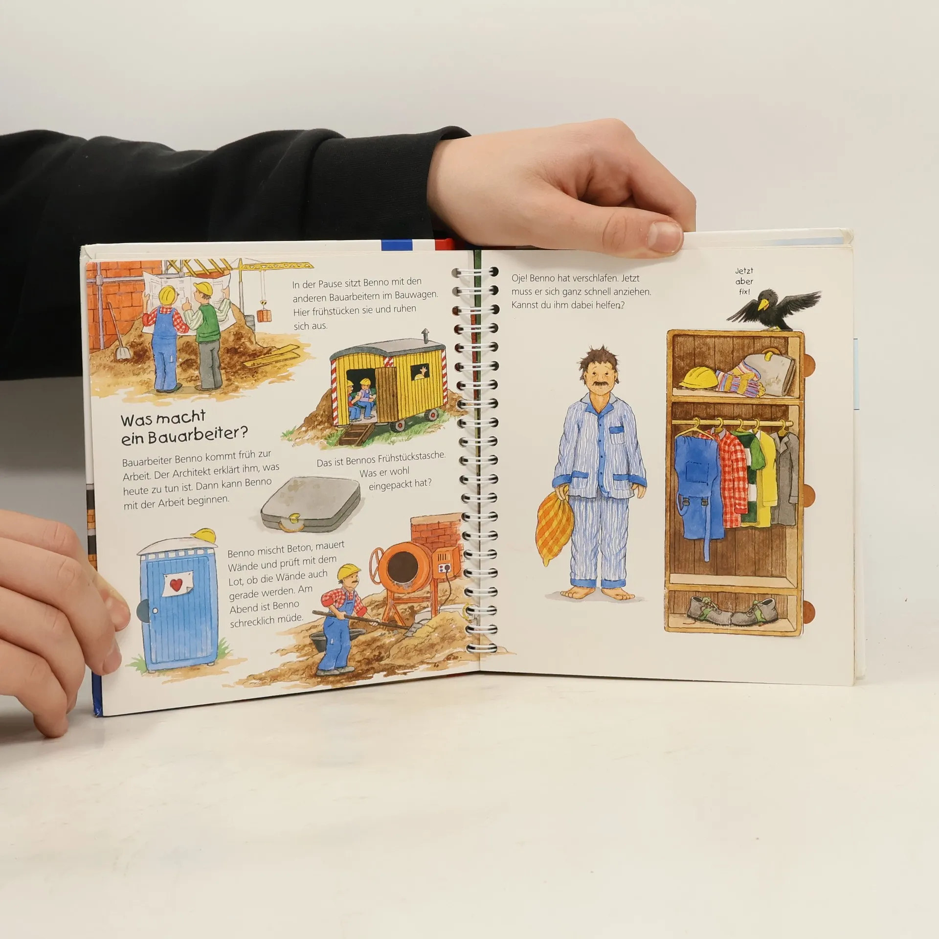 Wer mit Kindern am Zaun einer Baustelle steht, weiß, dass Bagger, Kran und Betonmischer die Augen der Kleinen zum Leuchten bringen. Wie wird ein Haus gebaut? Welche Maschinen kommen zum Einsatz? Was trägt ein Bauarbeiter? Dieses Buch beantwortet spielerisch erste Kinderfragen zur Baustelle mit vielen Klappen. Es führt Kinder ab 2 Jahren in die Welt der Baufahrzeuge, -arbeiten und -berufe ein. Die Sachbuchreihe für Kinder von 2-4 Jahren fördert die Neugier und beantwortet alltägliche Fragen: Wann kommt die Feuerwehr? Was machen die Tiere im Winter? Warum ist Zähneputzen wichtig? Die Reihe bietet kindgerechte Erklärungen zu verschiedenen Themen aus ihrem Alltag und ist mit viel Liebe zum Detail gestaltet. Die Bücher sind speziell für kleine Hände und deren Bedürfnisse konzipiert. Klare, liebevolle Bilder, kurze Texte und handliche Klappen, die Bewegungen veranschaulichen, ermöglichen es Kindern, selbstständig zu entdecken. Der Spaß am eigenhändigen Erkunden, die liebevolle Gestaltung und die hochwertige Ausstattung garantieren langanhaltende Freude an jedem Buch.